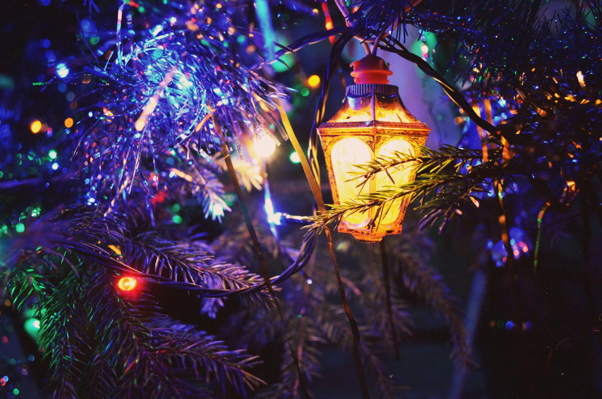 Árbol de Navidad con oropel y guirnalda brillante - fondos de pantalla
