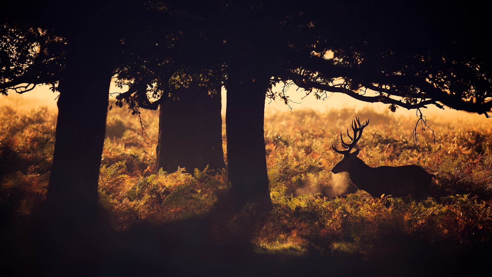 Ciervo al amanecer en el bosque - fondos de pantalla