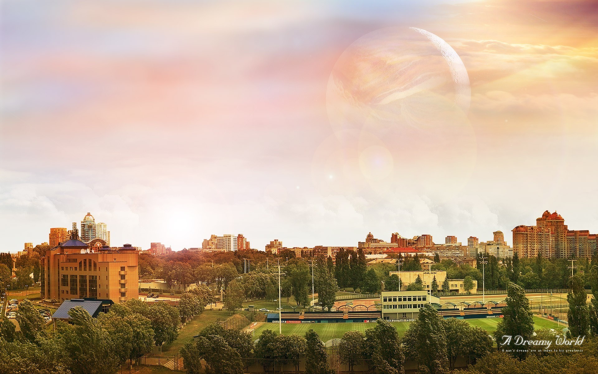 mundo de ensueño casas árboles cielo