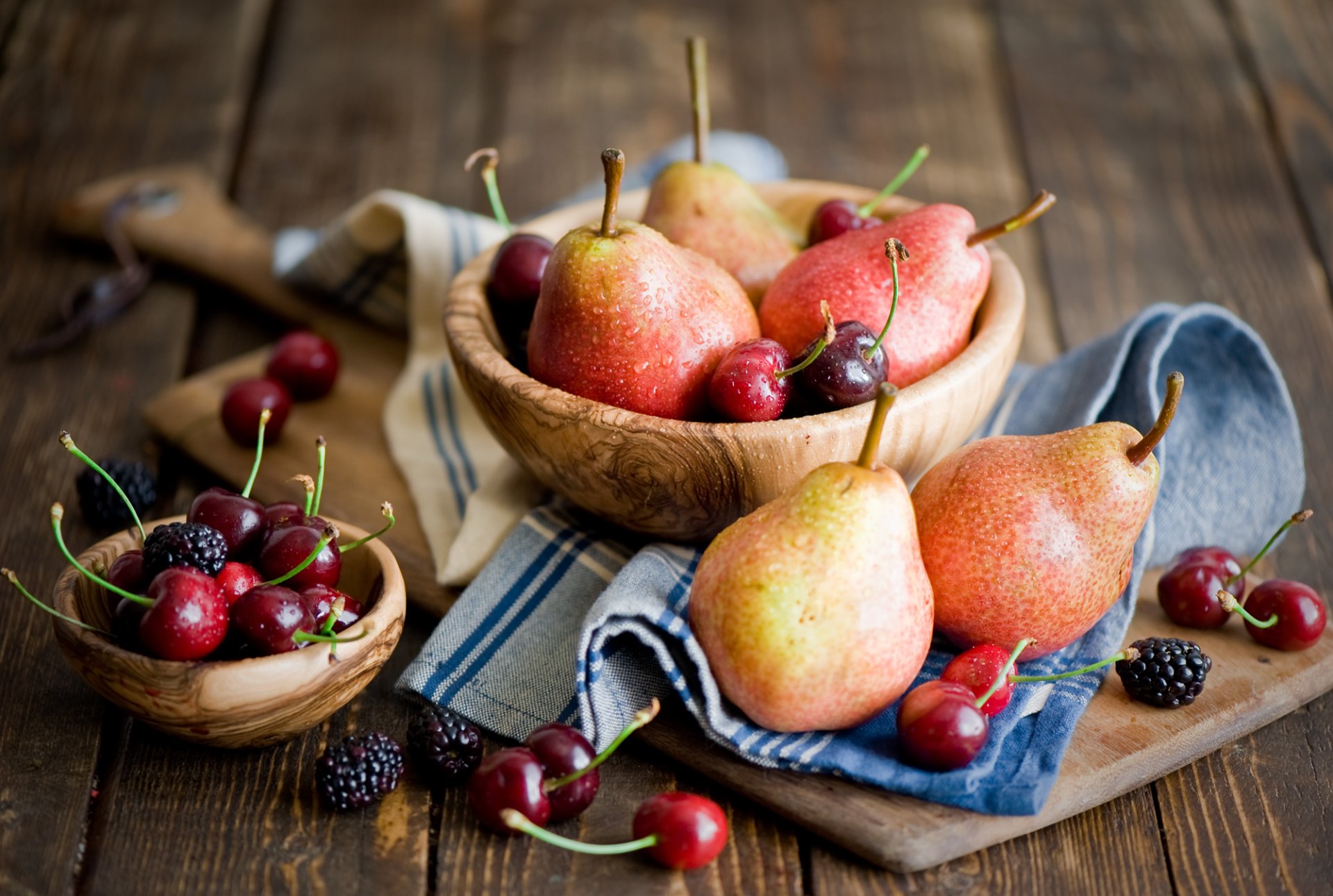 Etiquetas:peras, cerezas, moras, frutas, bayas, vajilla, madera, anna verdina