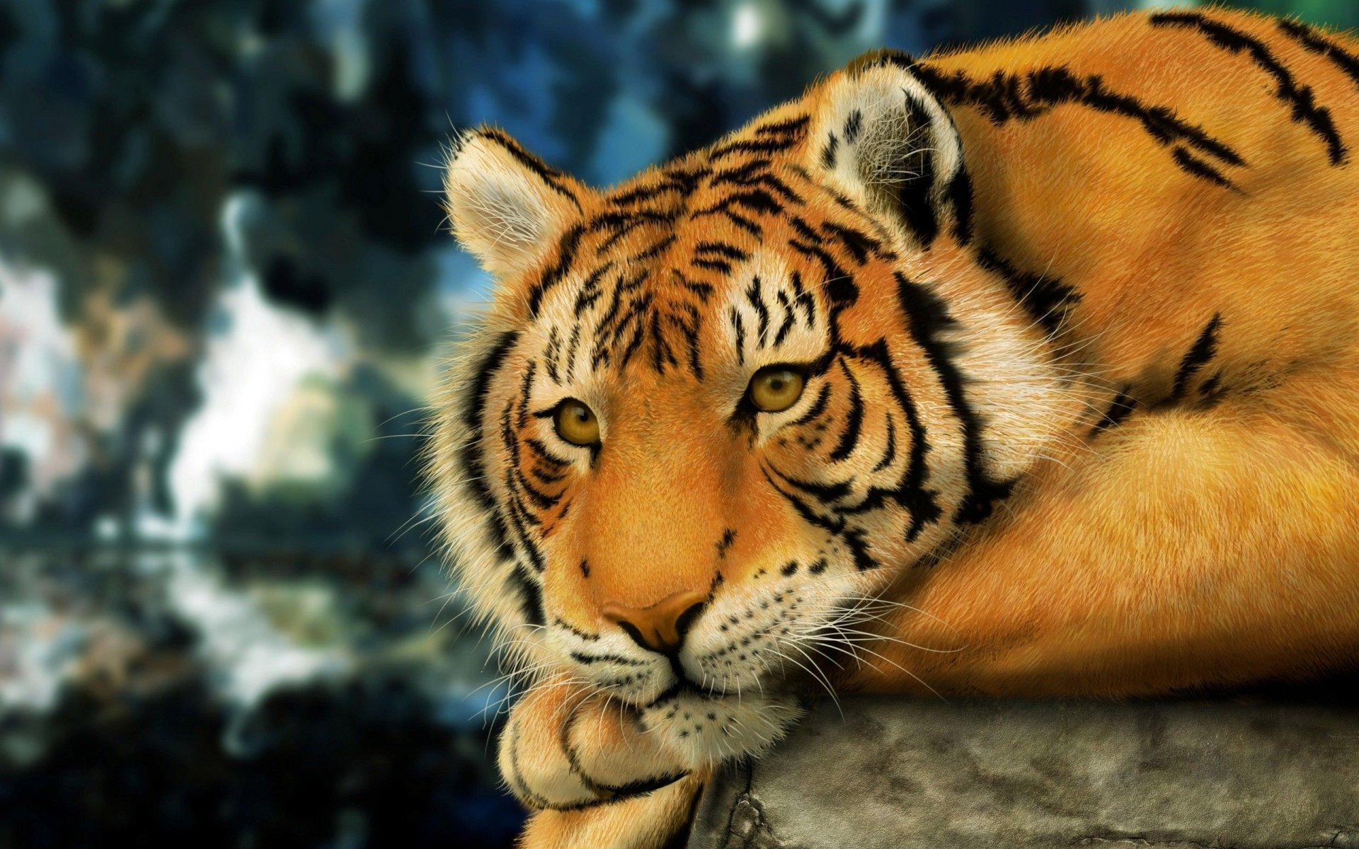 Etiquetas:tigre, lana, pose, mirada, piedra