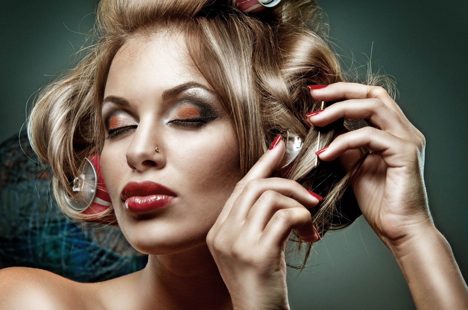 Chica perforada con maquillaje brillante y rulos - fondos de Escritorio