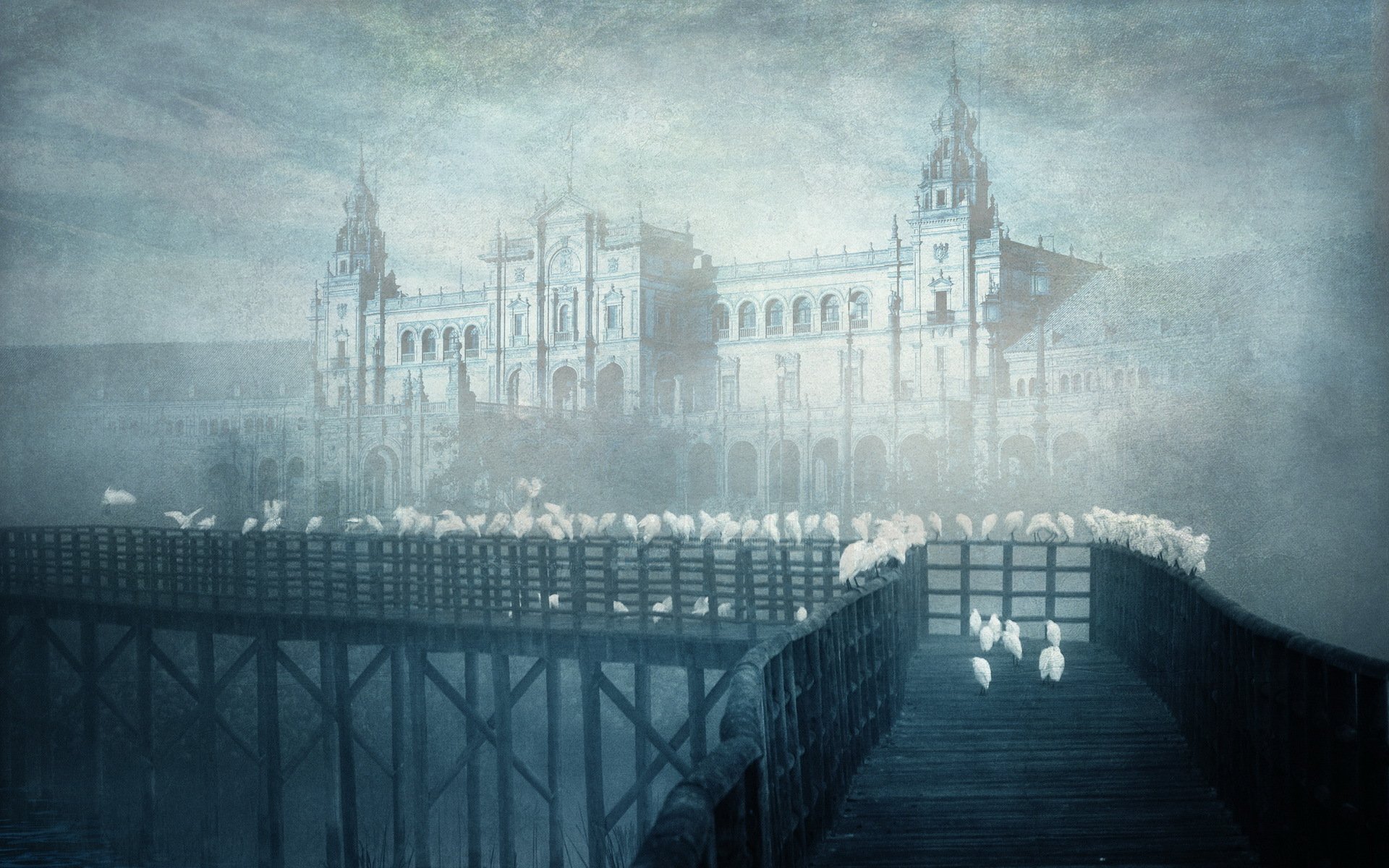 Etiquetas:ciudad, puente, aves, fondo, estilo