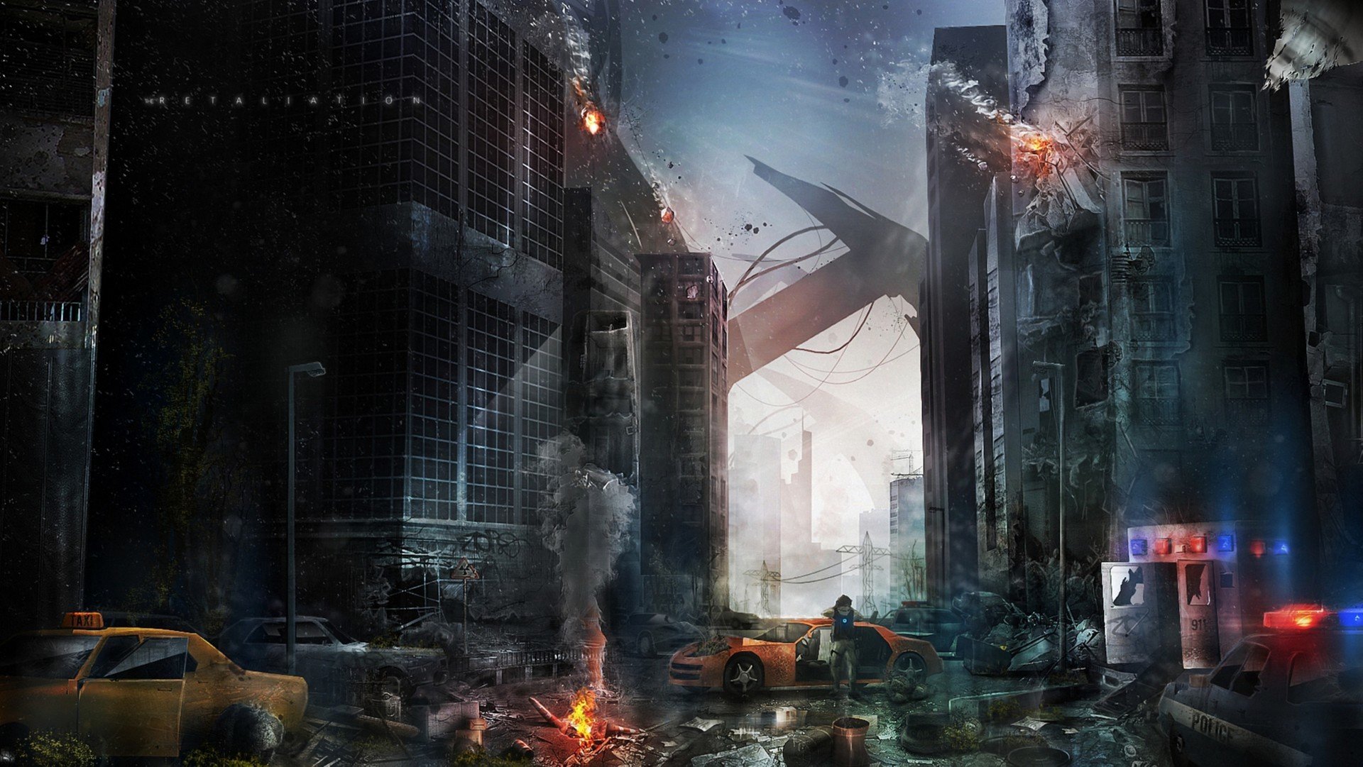 Ruinas accidente caos en la ciudad - fondos de Escritorio