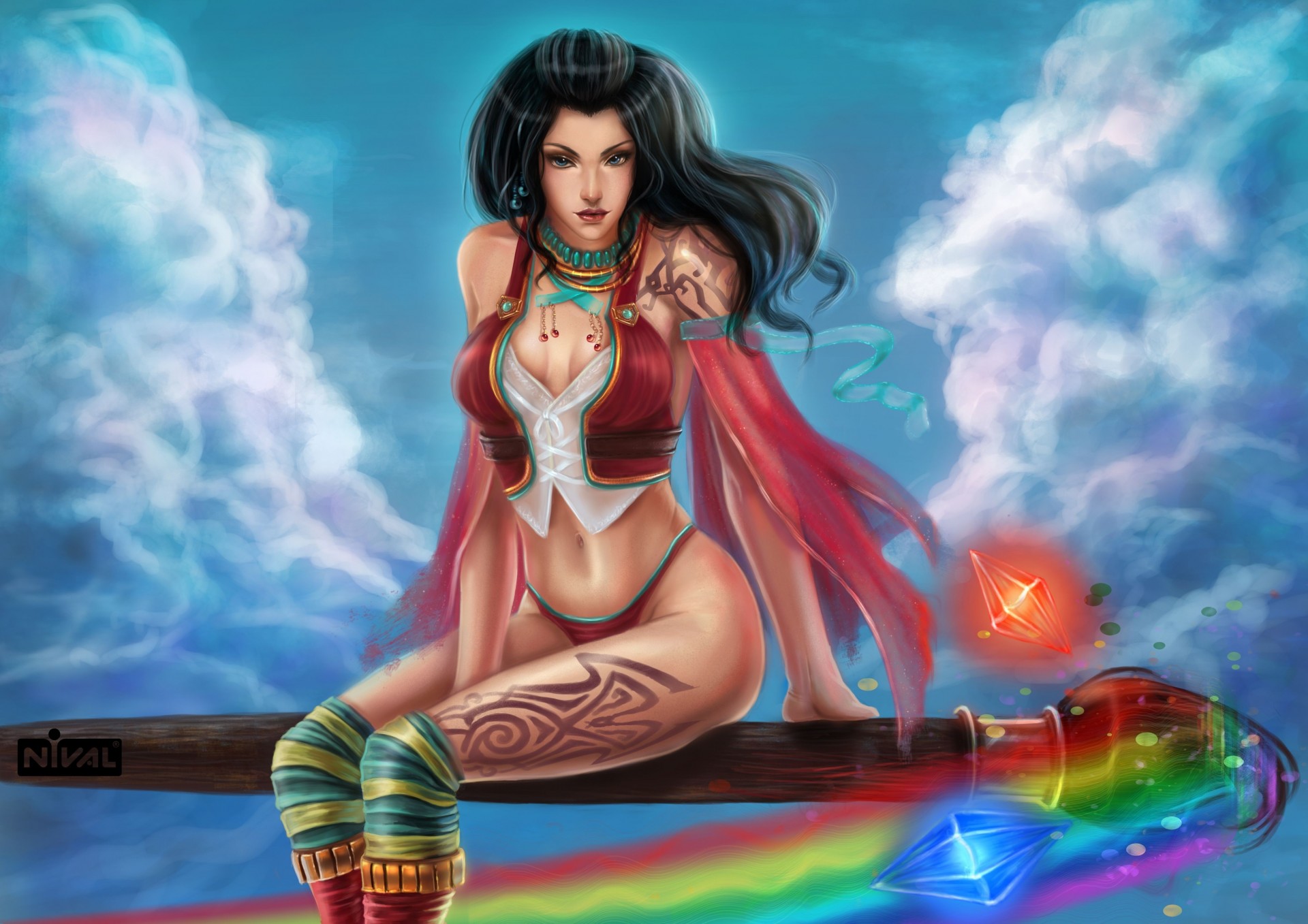Chica con poderes mágicos en el cielo - fondos de pantalla