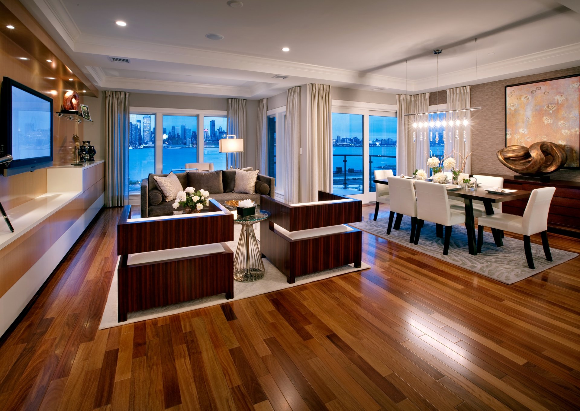 Etiquetas:apartamento, habitación, sala de estar, tv, sillones, mesa, ventanas, cortinas, ciudad
