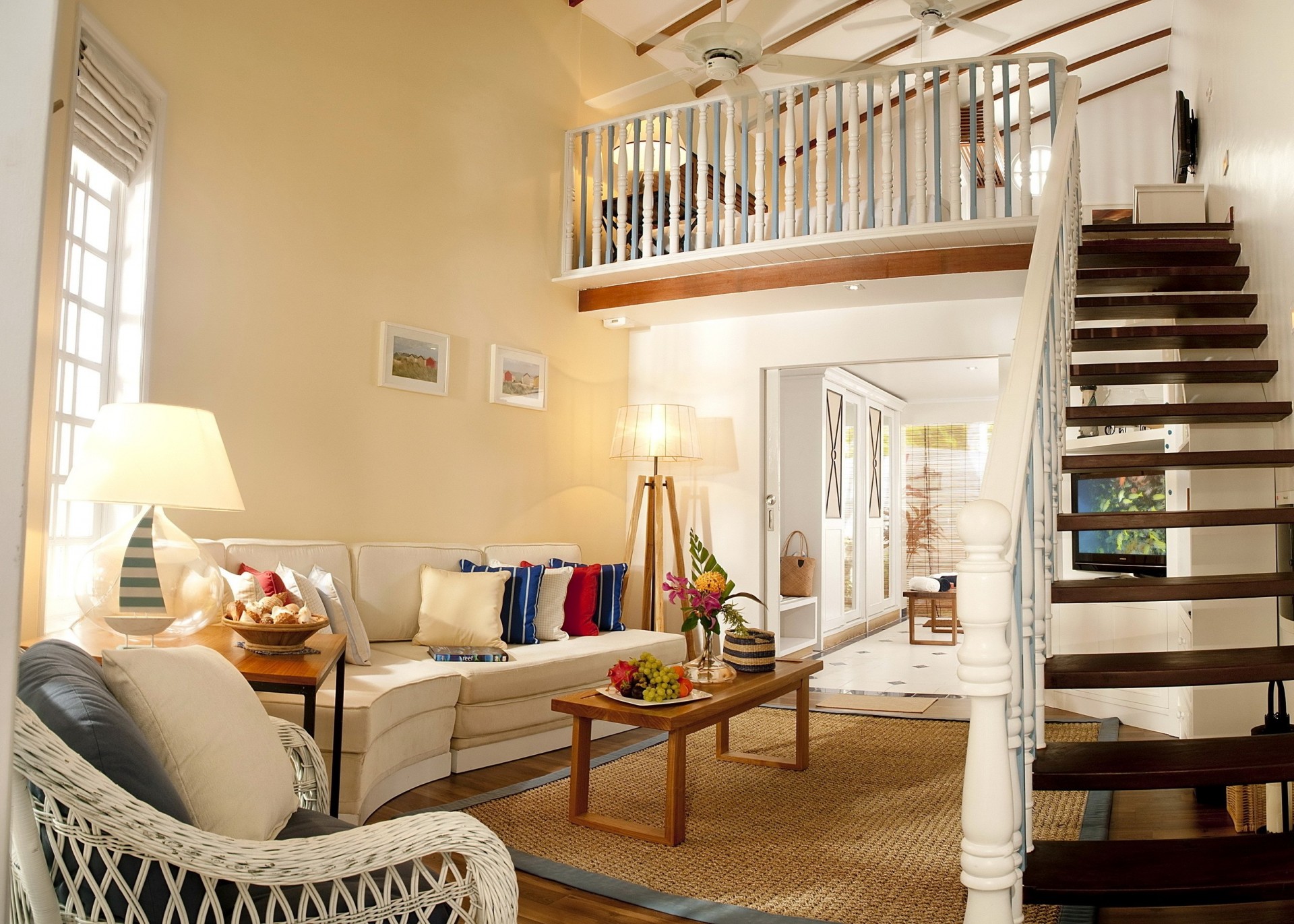salón foto sofá escalera