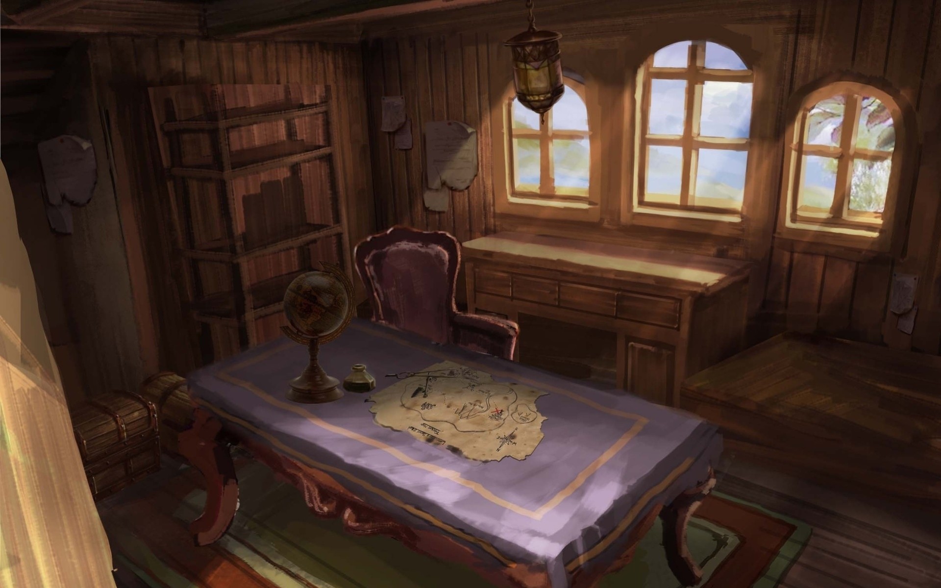 Gabinete oscuro. Mapa del tesoro sobre la mesa - fondos de Escritorio