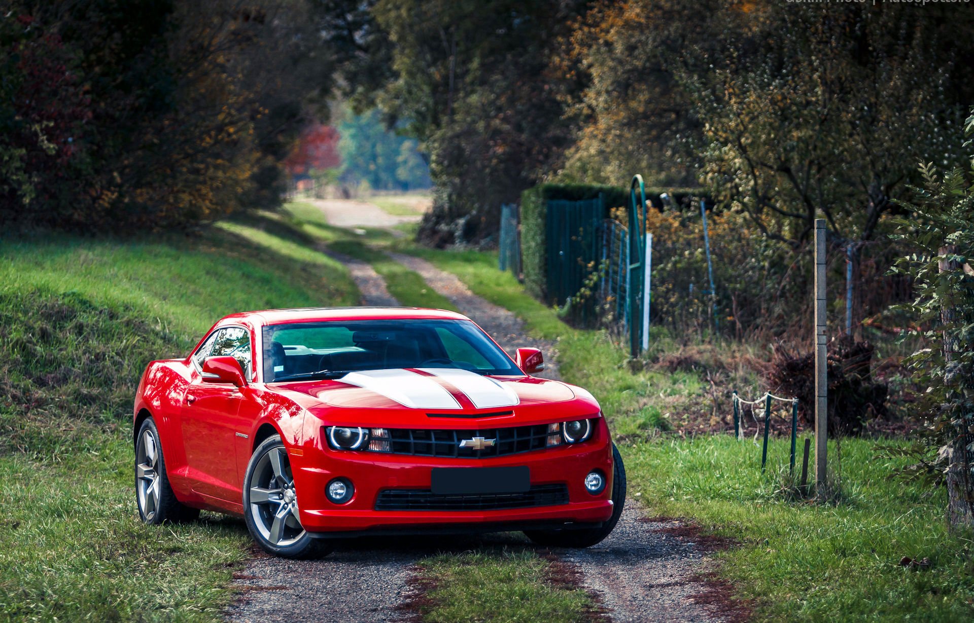 Chevrolet Camaro en un camino rural en el campo - fondos de Escritorio