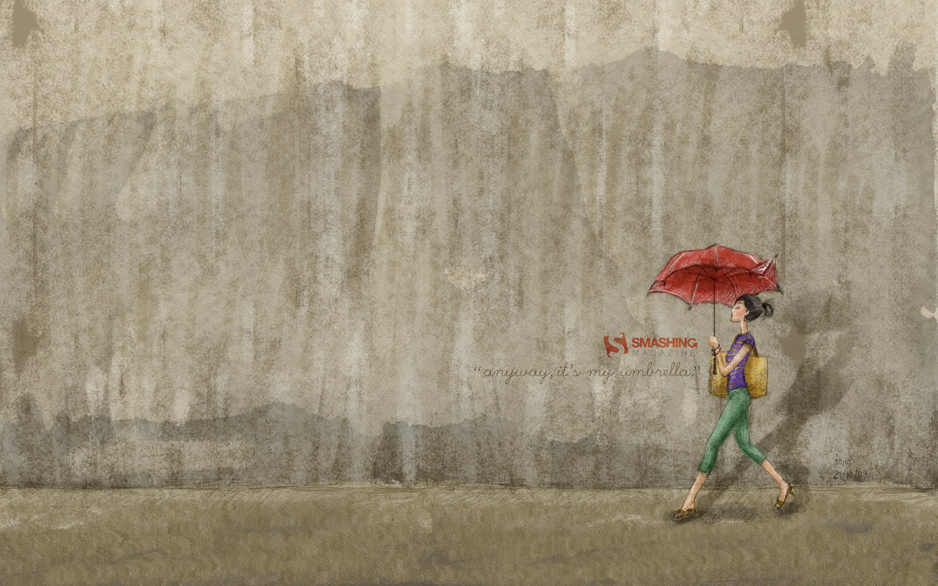 Acuarela dibujo chica con paraguas rojo - fondos de pantalla