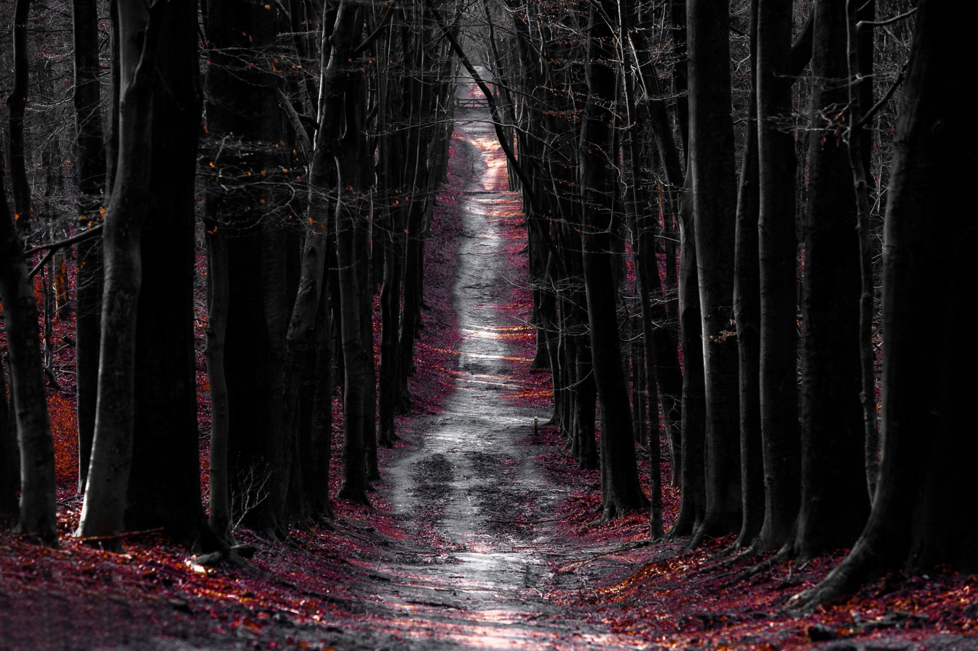 Camino que atraviesa el bosque con árboles - fondos de Escritorio