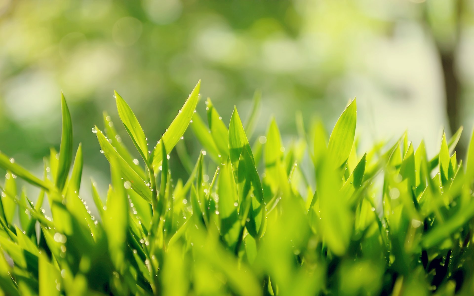 Hojas de té verde con gotas de rocío - fondos de Escritorio