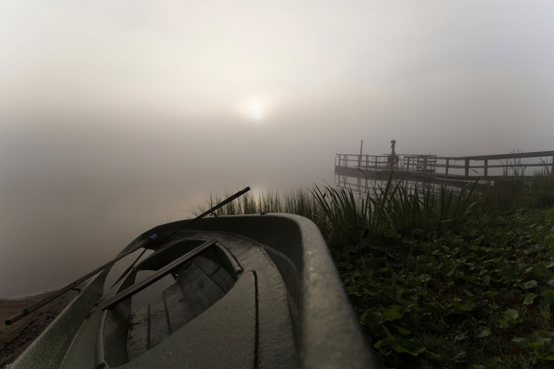 Mañana con niebla y barco en el lago - fondos de Escritorio