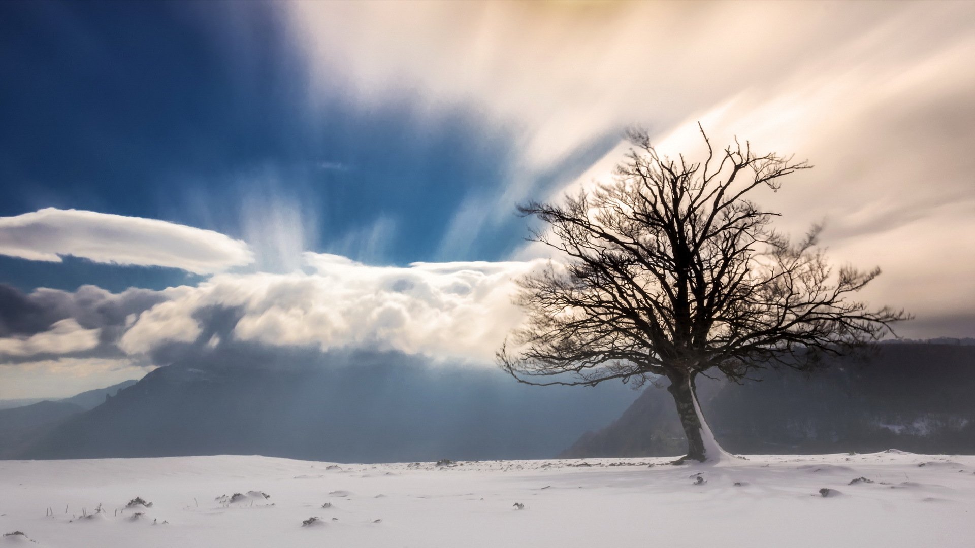 Árbol en la nieve y en la niebla - fondos de pantalla