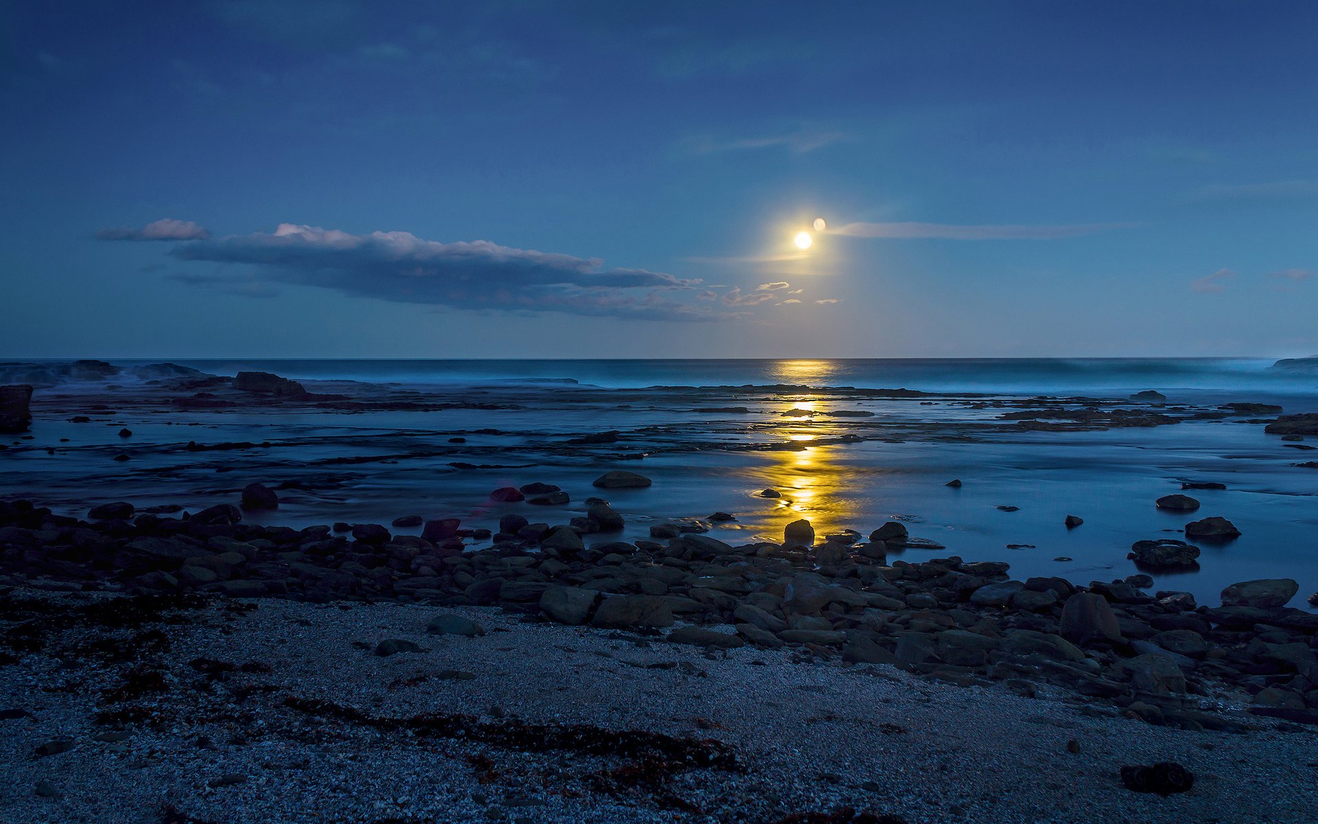 El brillo de la Luna en el reflejo del mar - fondos de Escritorio