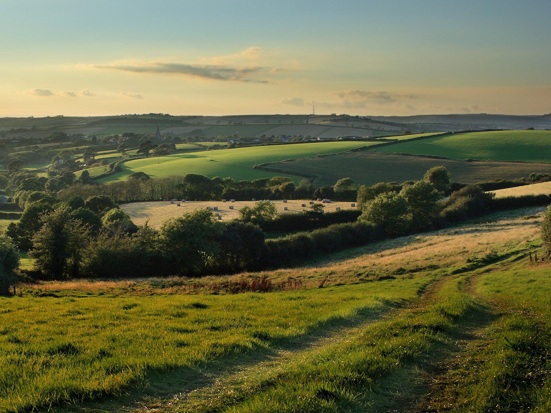 Vista desde la colina en el campo y la carretera - fondos de Escritorio