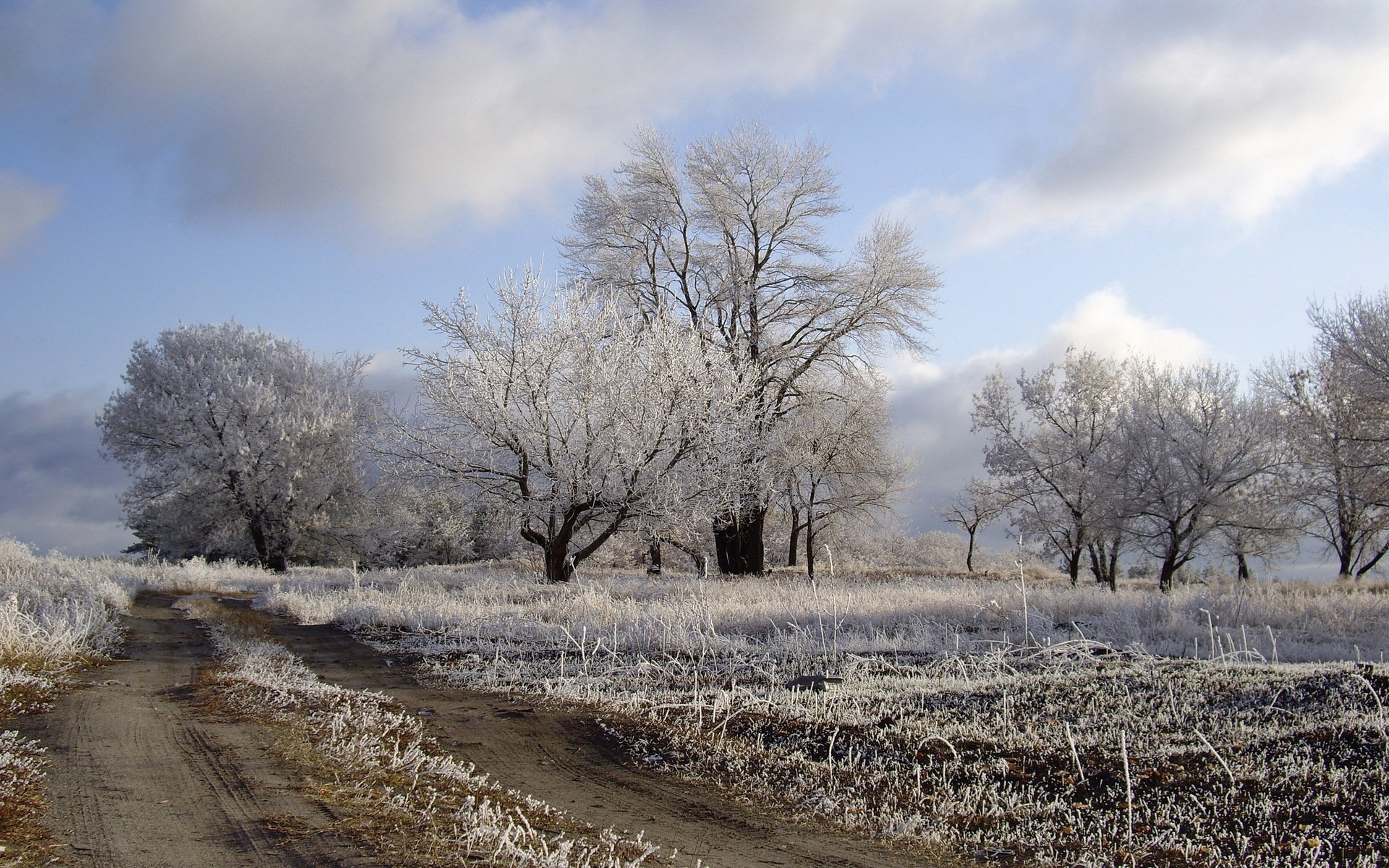 Camino en un campo cubierto de escarcha - fondos de pantalla
