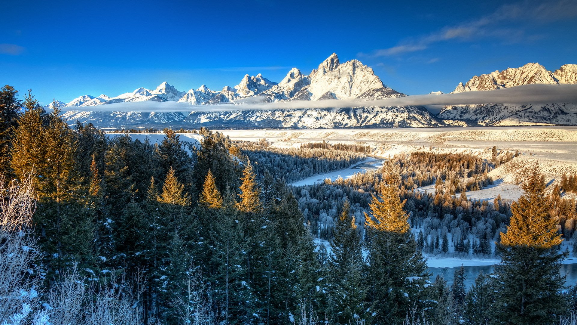 Fantásticas montañas nevadas y bosques - fondos de pantalla