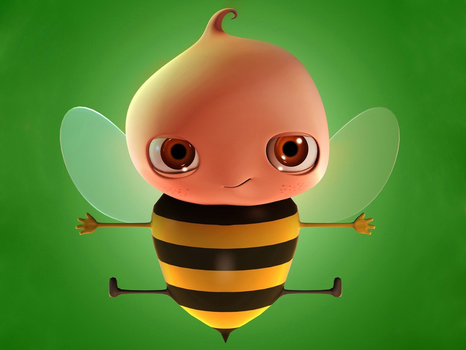 Abeja voladora sobre fondo verde - fondos de Escritorio