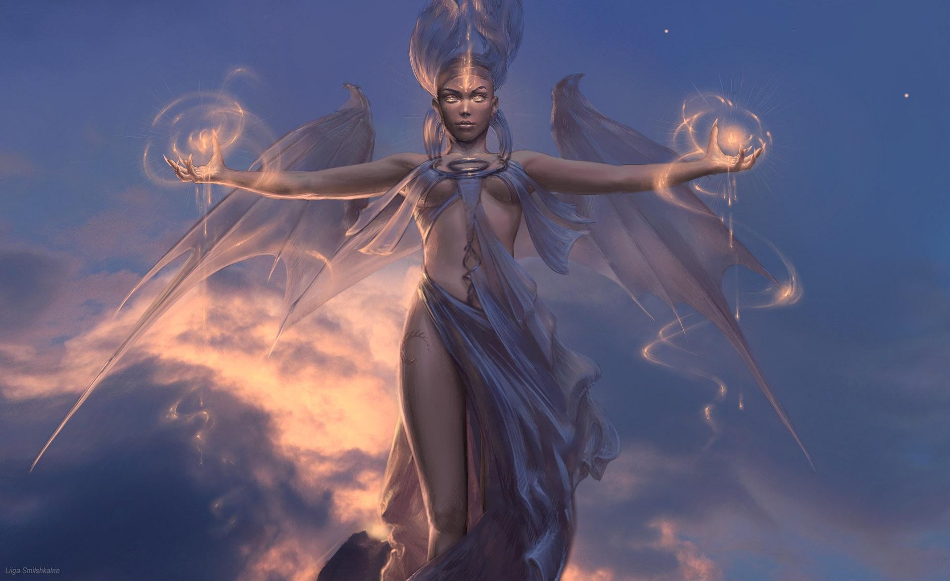 Chica mágica con alas y con bolas brillantes en las Palmas - fondos de Escritorio