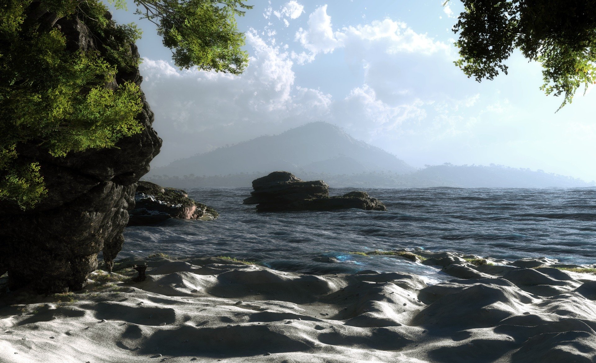 arte klontak paisaje mar arena costa olas rocas rocas vegetación