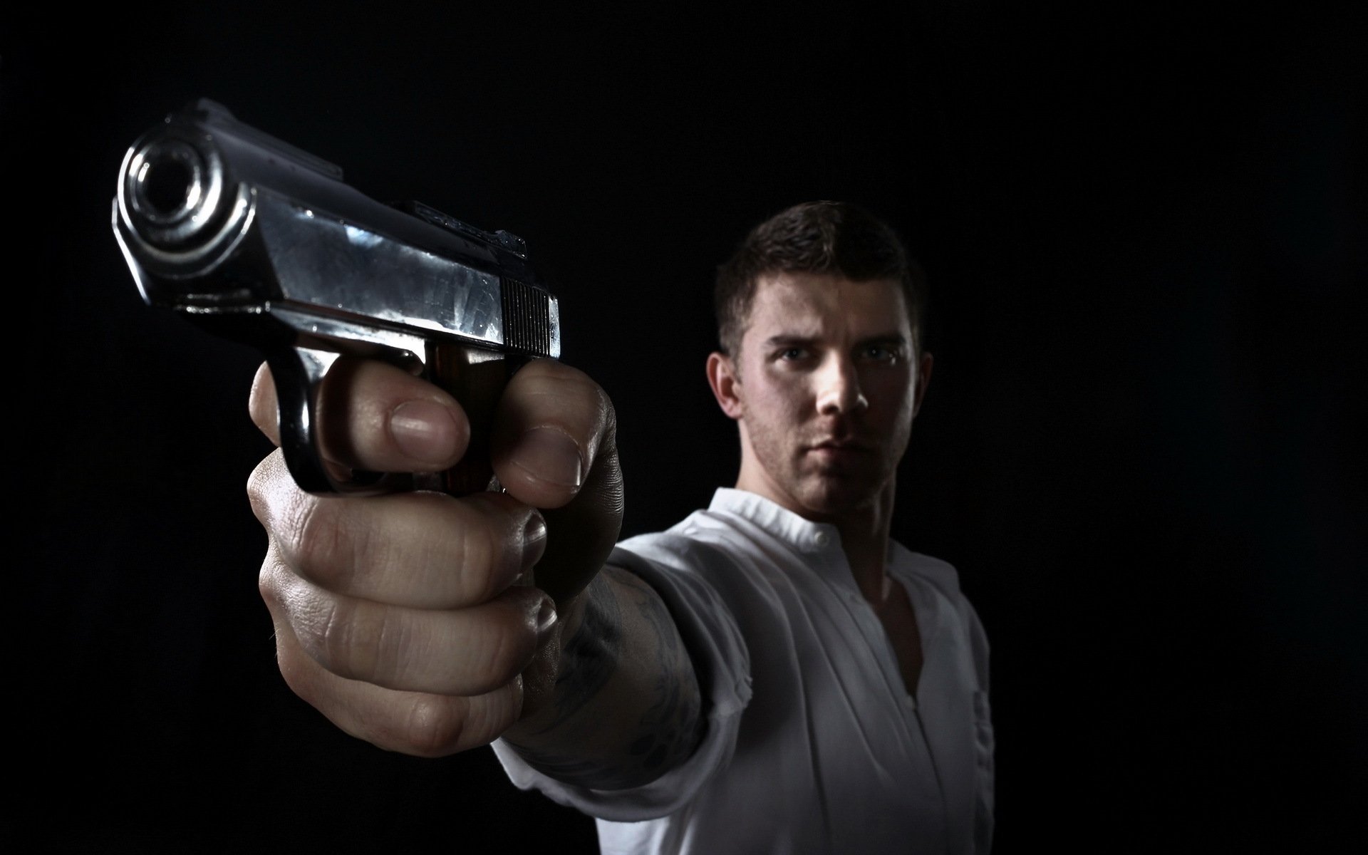 Hombre con arma de fuego en la mano - fondos de Escritorio