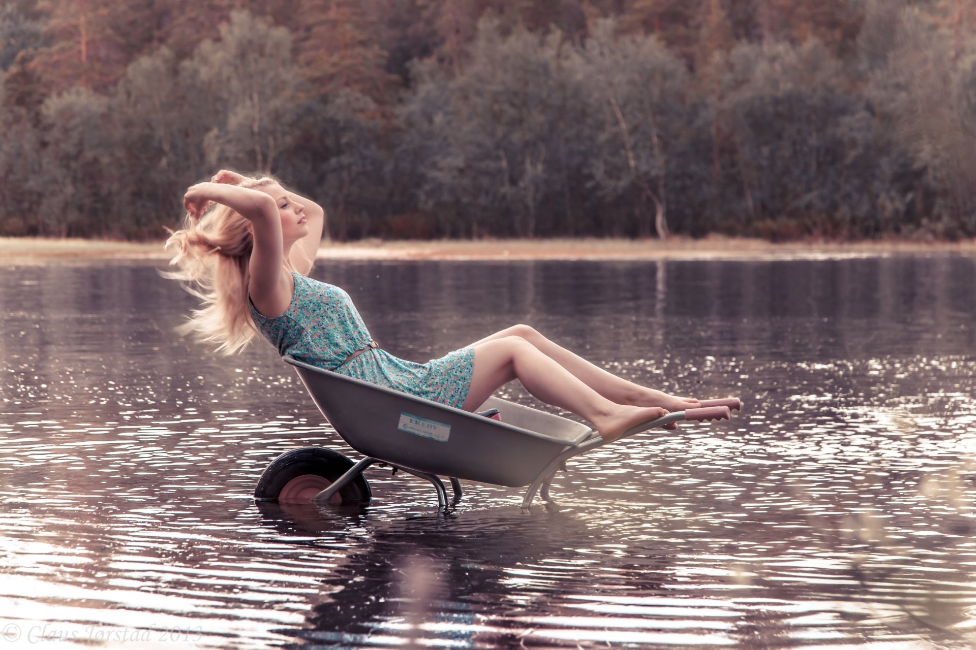 Chica en el agua en una carretilla inusual - fondos de pantalla