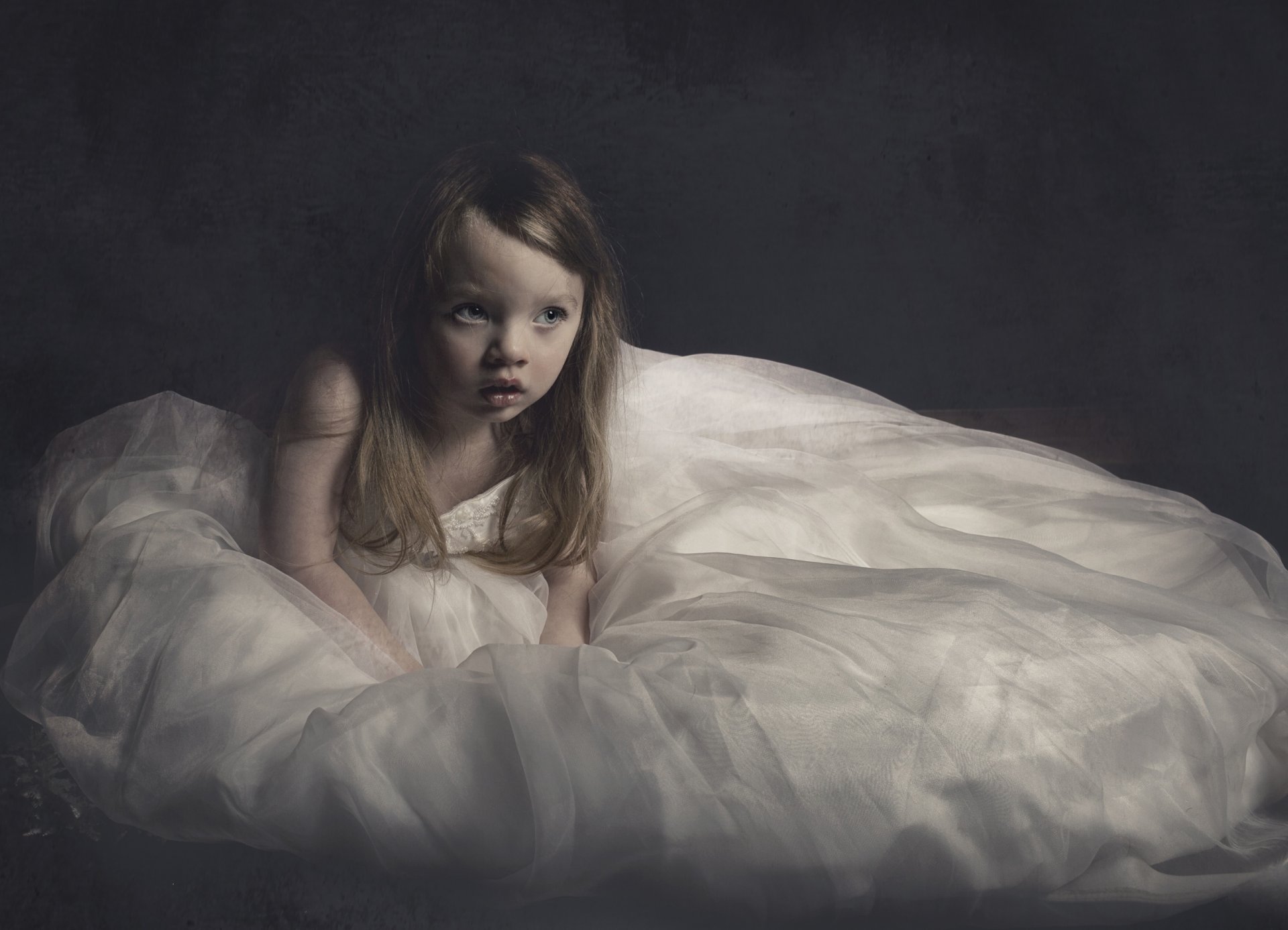 Chica en un largo vestido blanco en el Suelo - fondos de pantalla