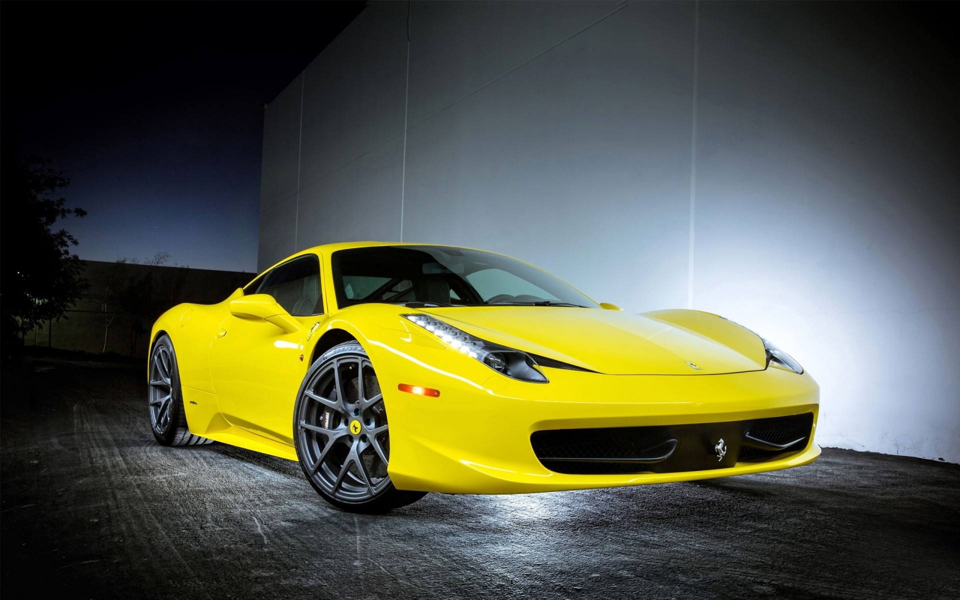 Ferrari amarillo en la carretera cerca de los árboles verdesFerrari amarillo en la carretera cerca de los árboles verdes