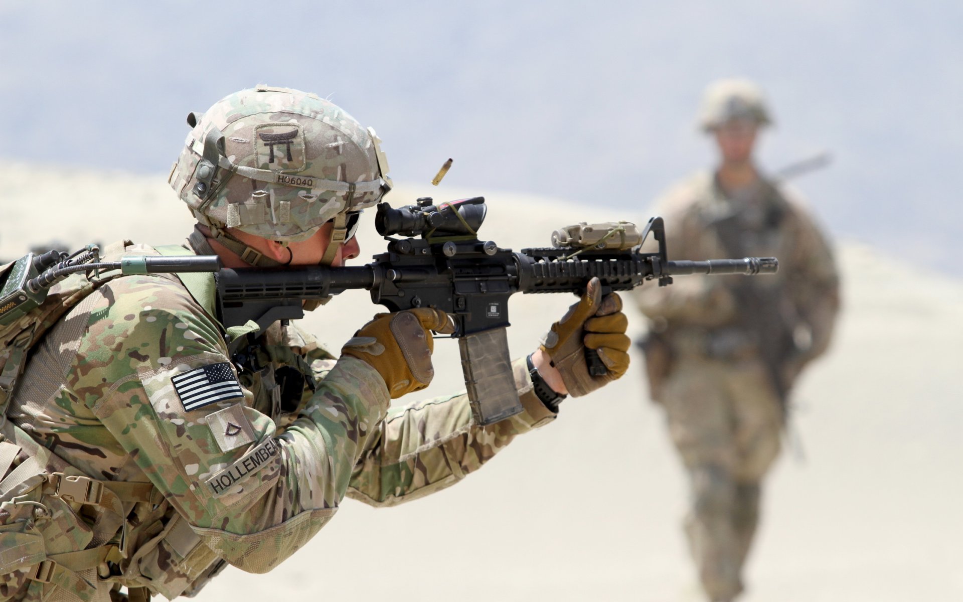 Soldados con armas. Disparos, ejército