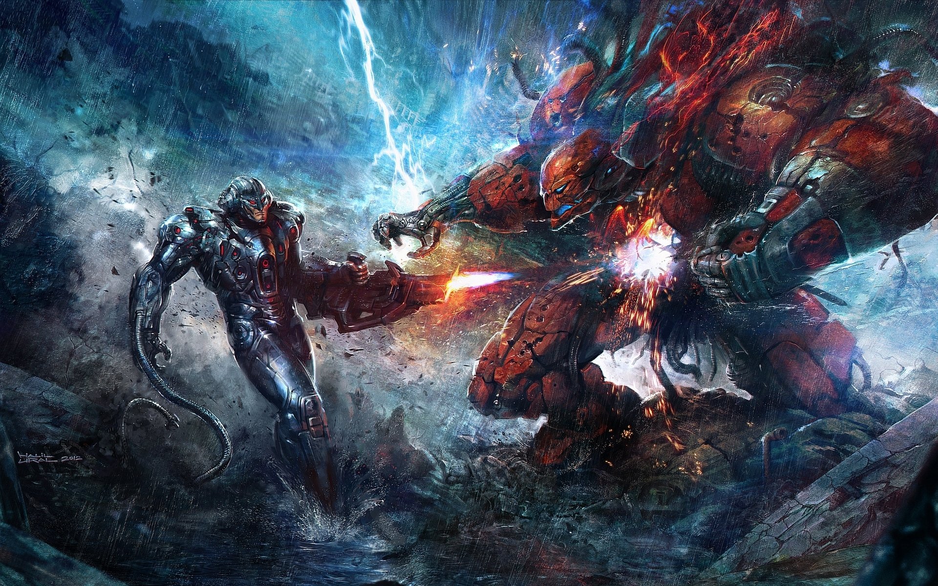 Episodio del juego de ordenador soldado chica en el fondo de la nave espacial