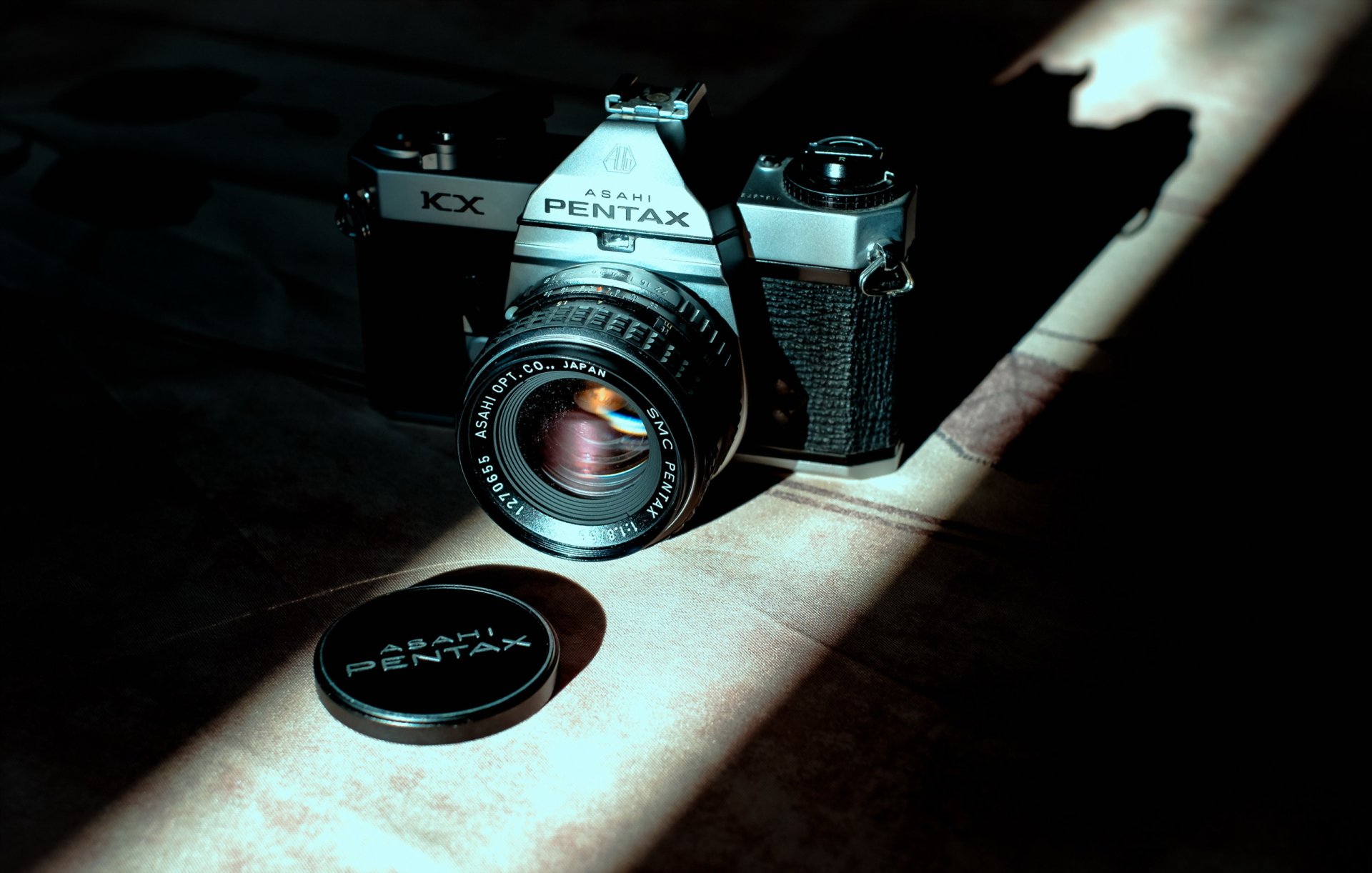 Fondo de pantalla de la cámara PENTAX EN un fondo blanco