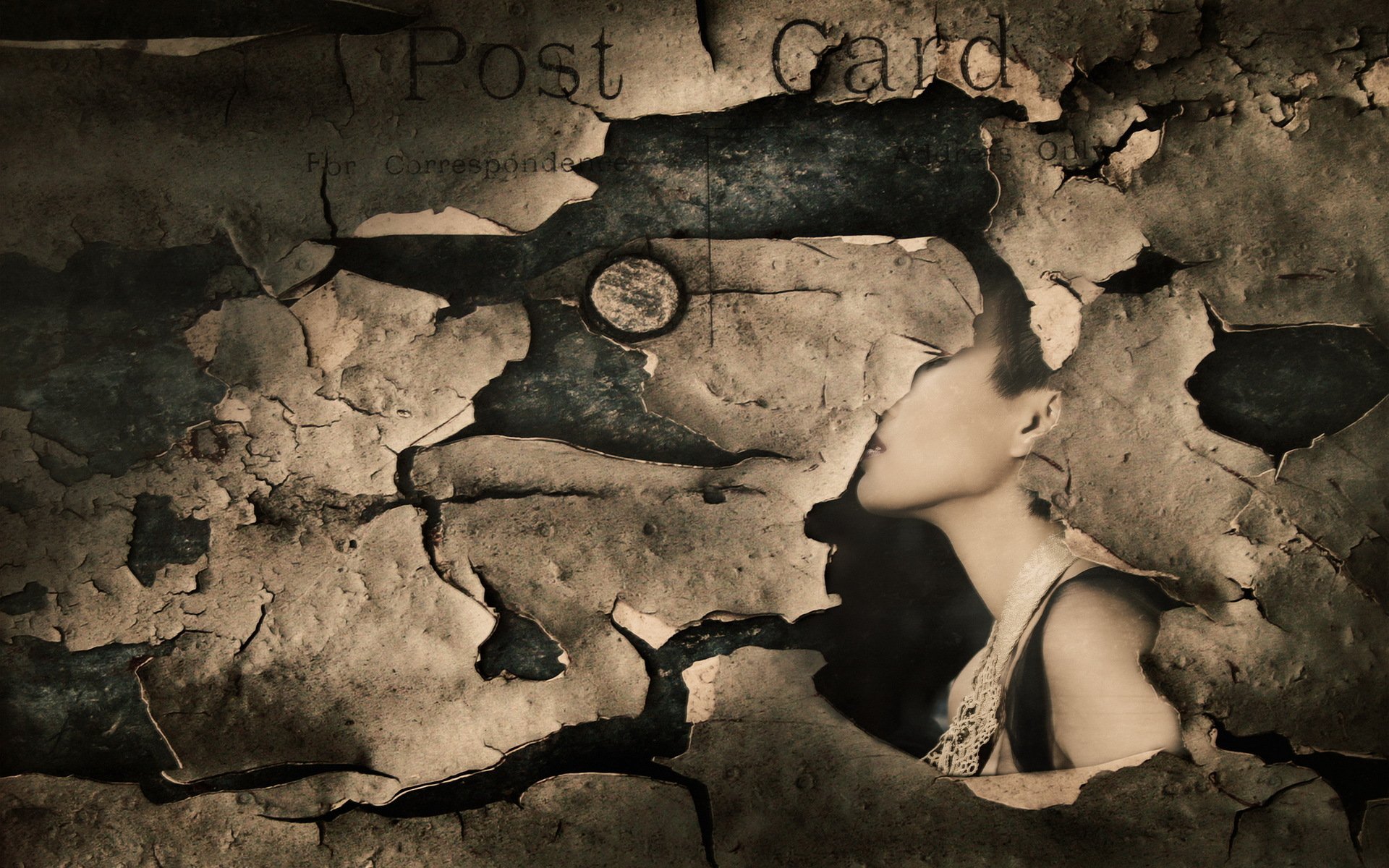 Un hombre pelirrojo con bigote agarró a una mujer zombie por la garganta por detrás y la apuñaló