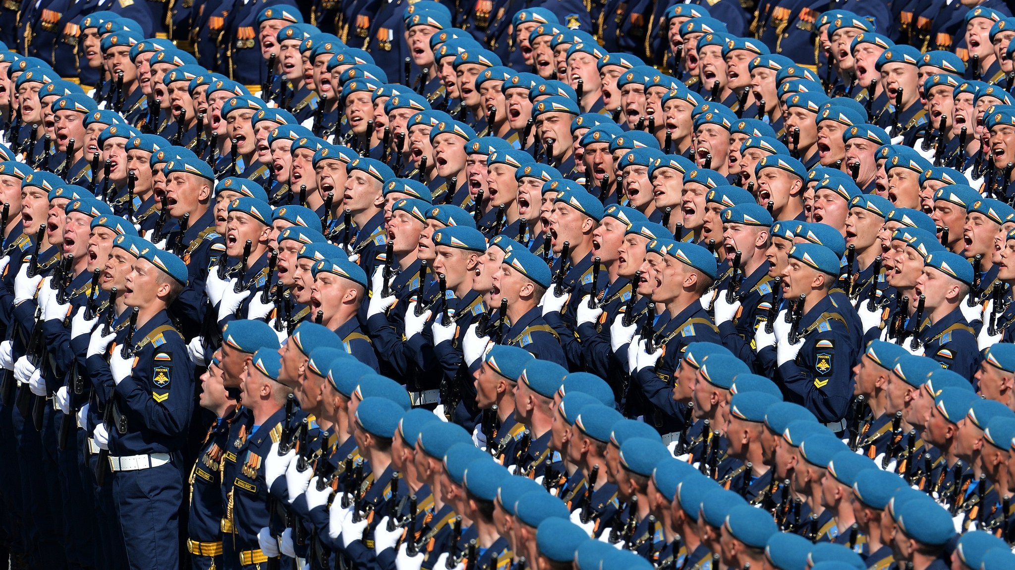 Día de la victoria en la ciudad de moscú. tropas aerotransportadas en la plaza rojaDía de la Victoria en la ciudad de Moscú. Tropas aerotransportadas en la Plaza roja