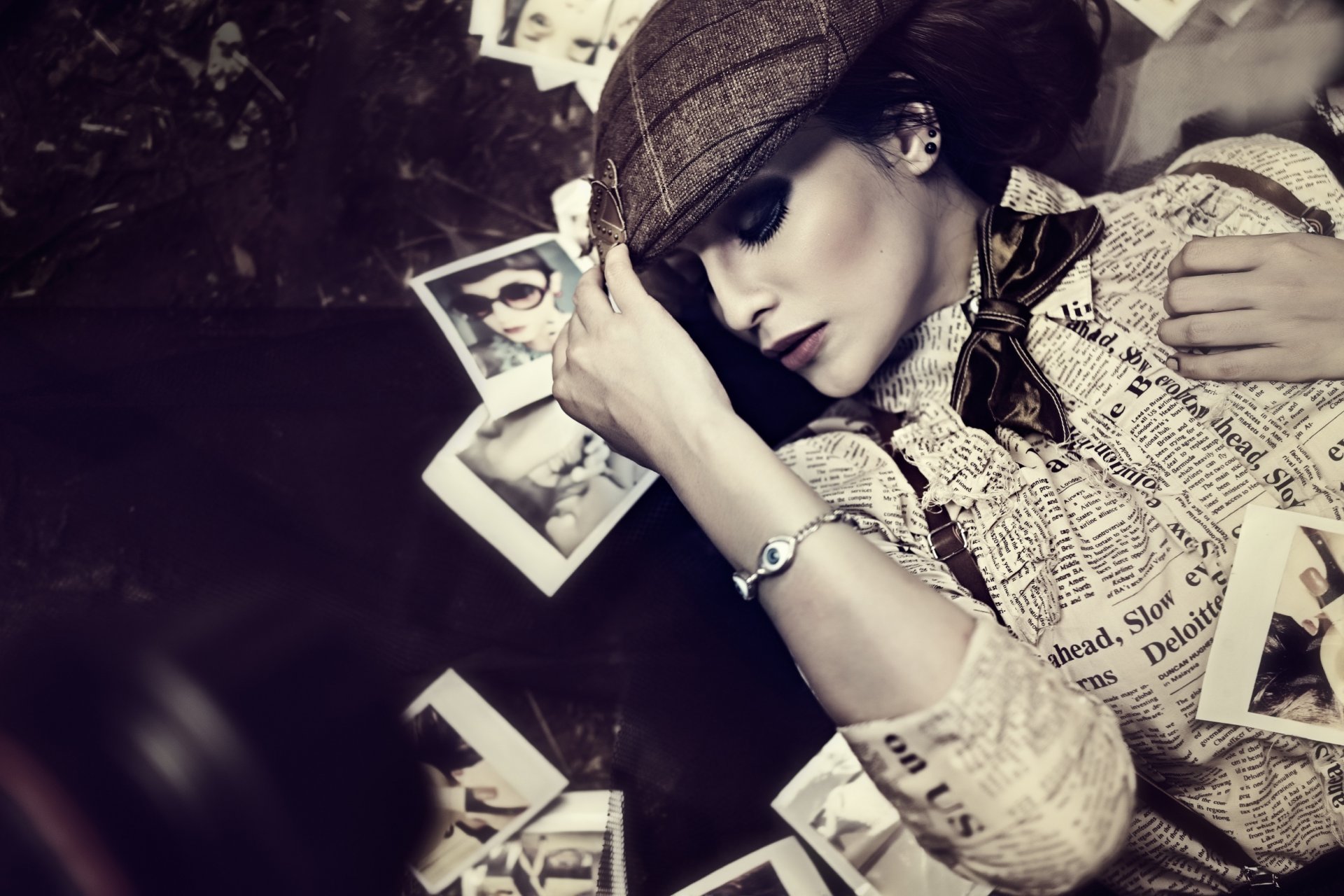 Una chica con una gorra verde camina en el parque entre los árboles en florUna chica con una gorra verde camina en el parque entre los árboles en flor