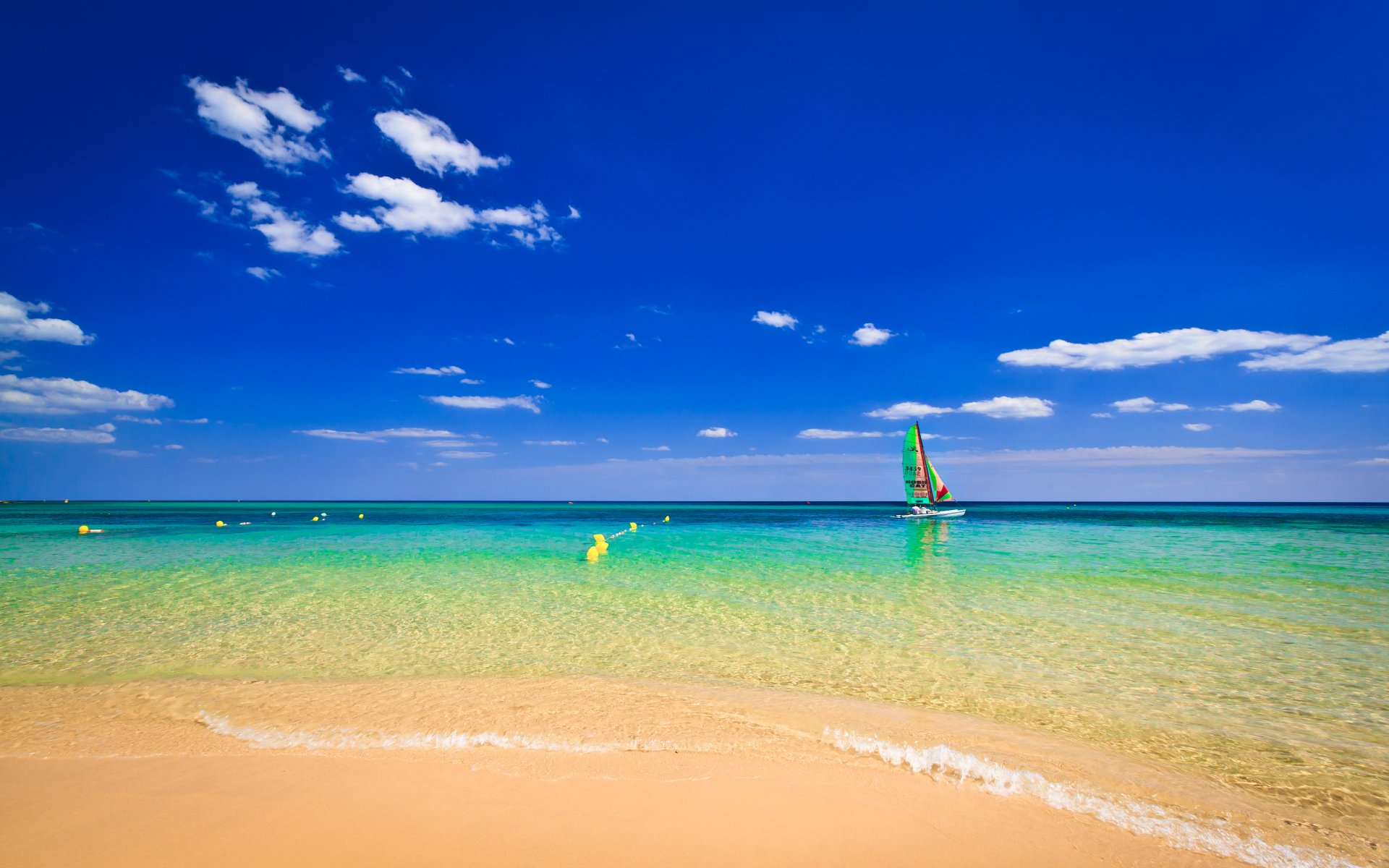 Paisaje. Mar con playa de arena con palmeras