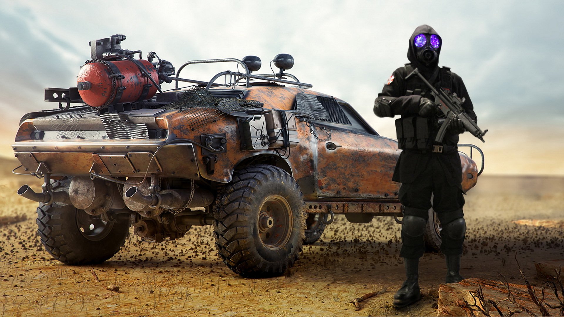 Un soldado con un arma en la mano en el fondo de un edificioUn soldado con un arma en la mano en el fondo de un edificio