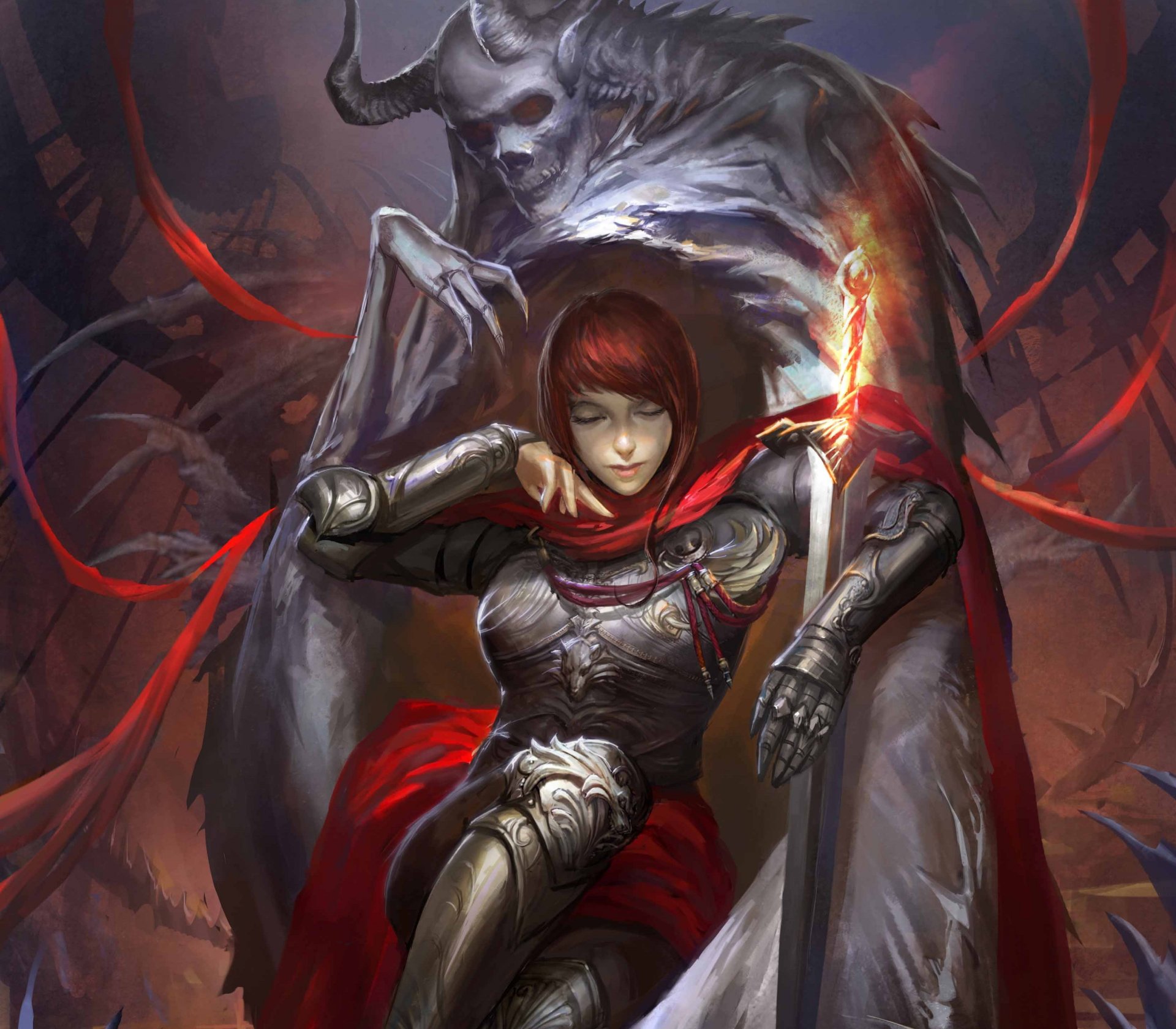 Arte, leyenda cryptids chica en un caballo poderoso con una espadaArte, leyenda cryptids chica en un caballo poderoso con una espada