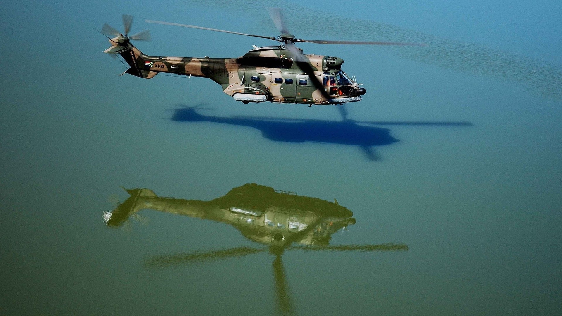 Cinco aviones de combate en vuelo en el cielo oscuro de la noche