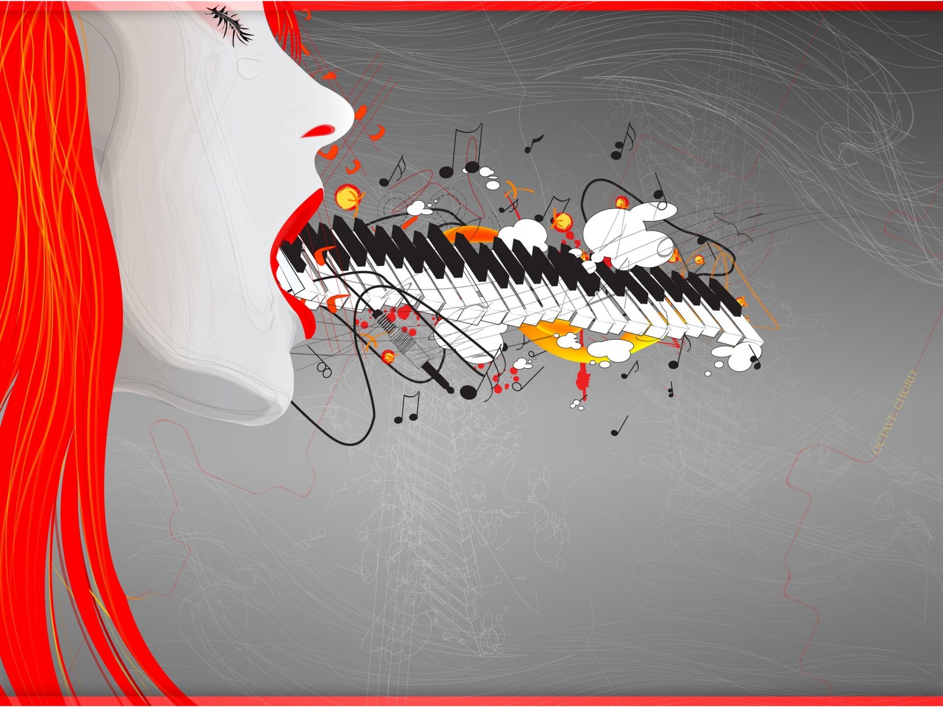 La lengua del teclado de una chica con el pelo rojoLa lengua del teclado de una chica con el pelo rojo