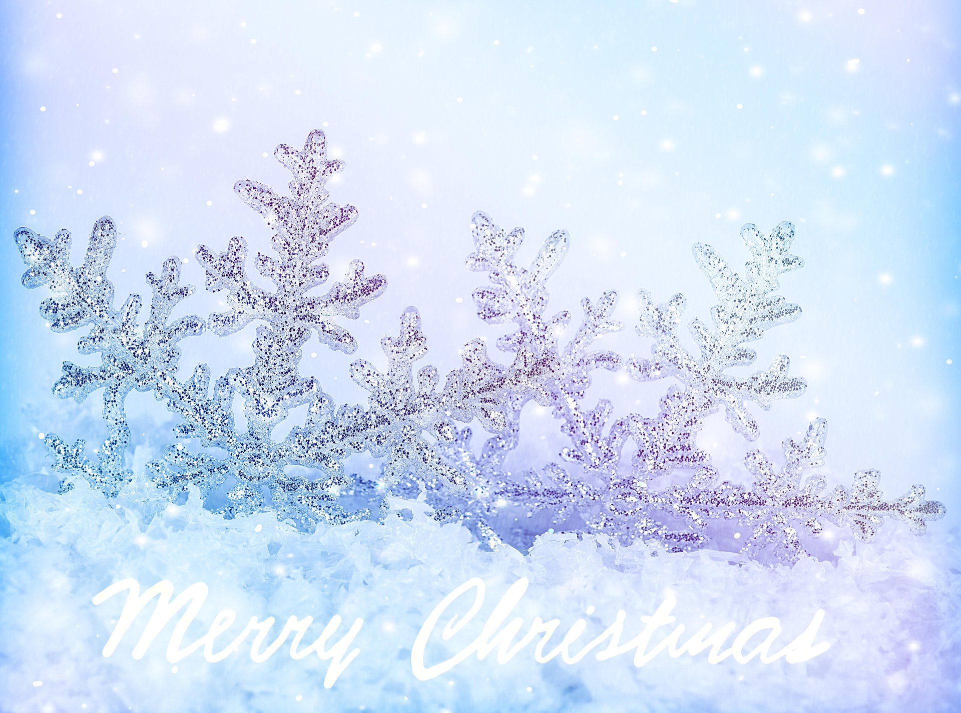 Los copos de nieve brillantes se encuentran en la nieve de año nuevo