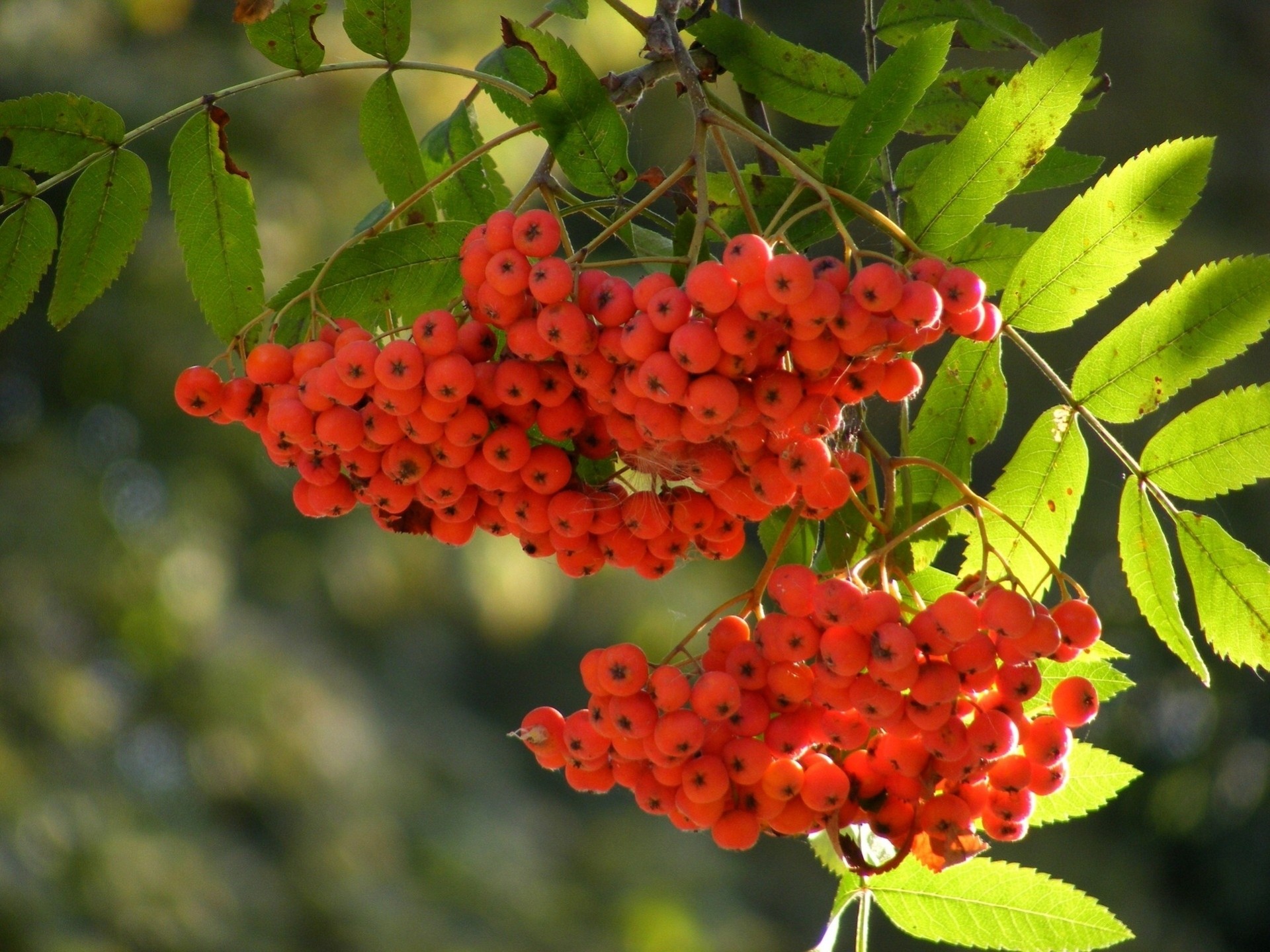 Macro cepillo de ceniza de montaña en la luz del solMacro cepillo de ceniza de montaña en la luz del sol