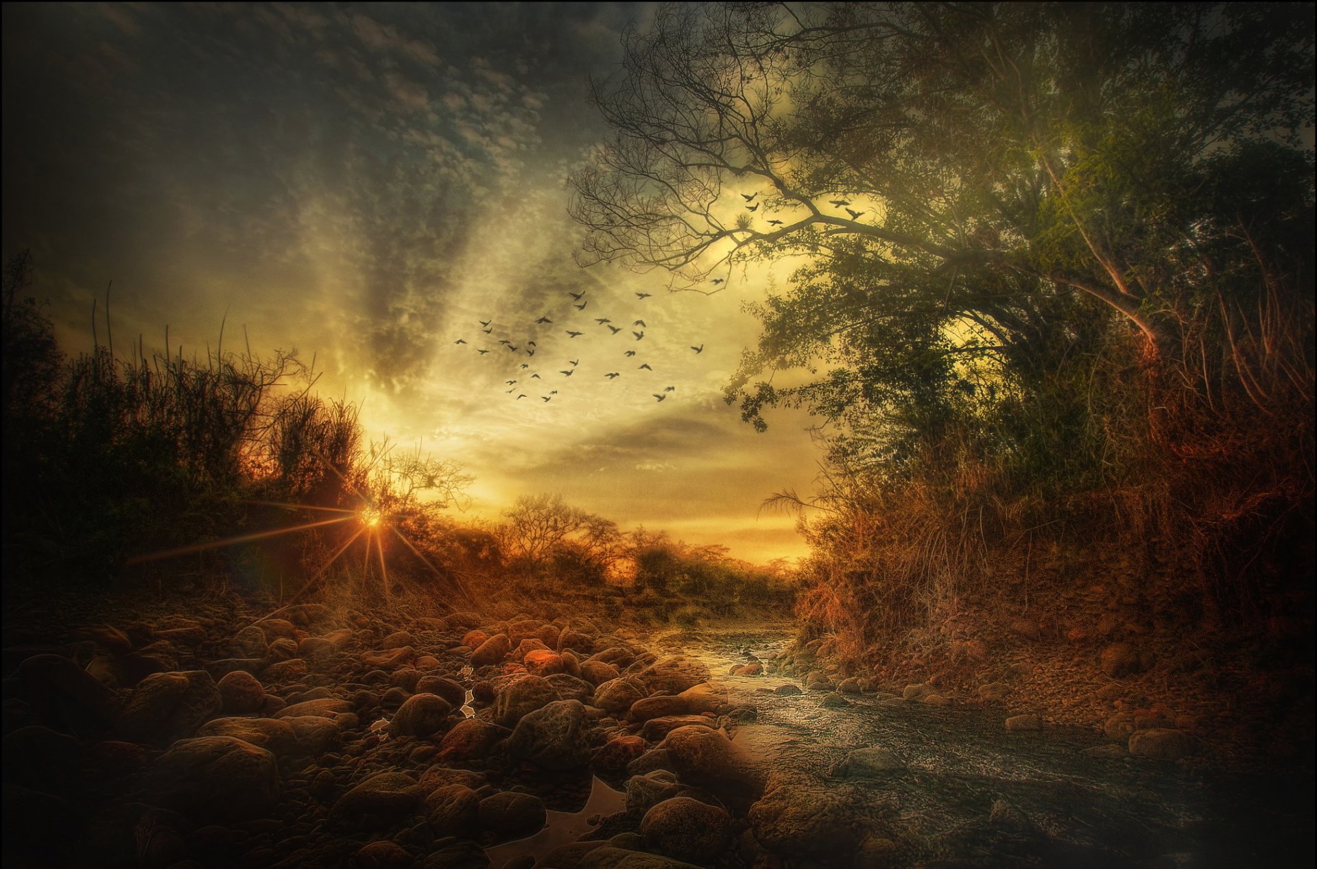 Los rayos del sol brillan a través de la corona del árbolLos rayos del sol brillan a través de la corona del árbol