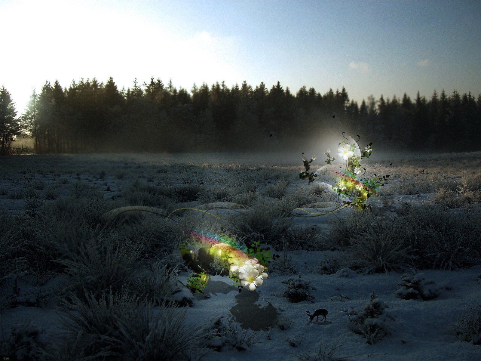 Paisaje de invierno camino y árboles bajo la nievePaisaje de invierno camino y árboles bajo la nieve