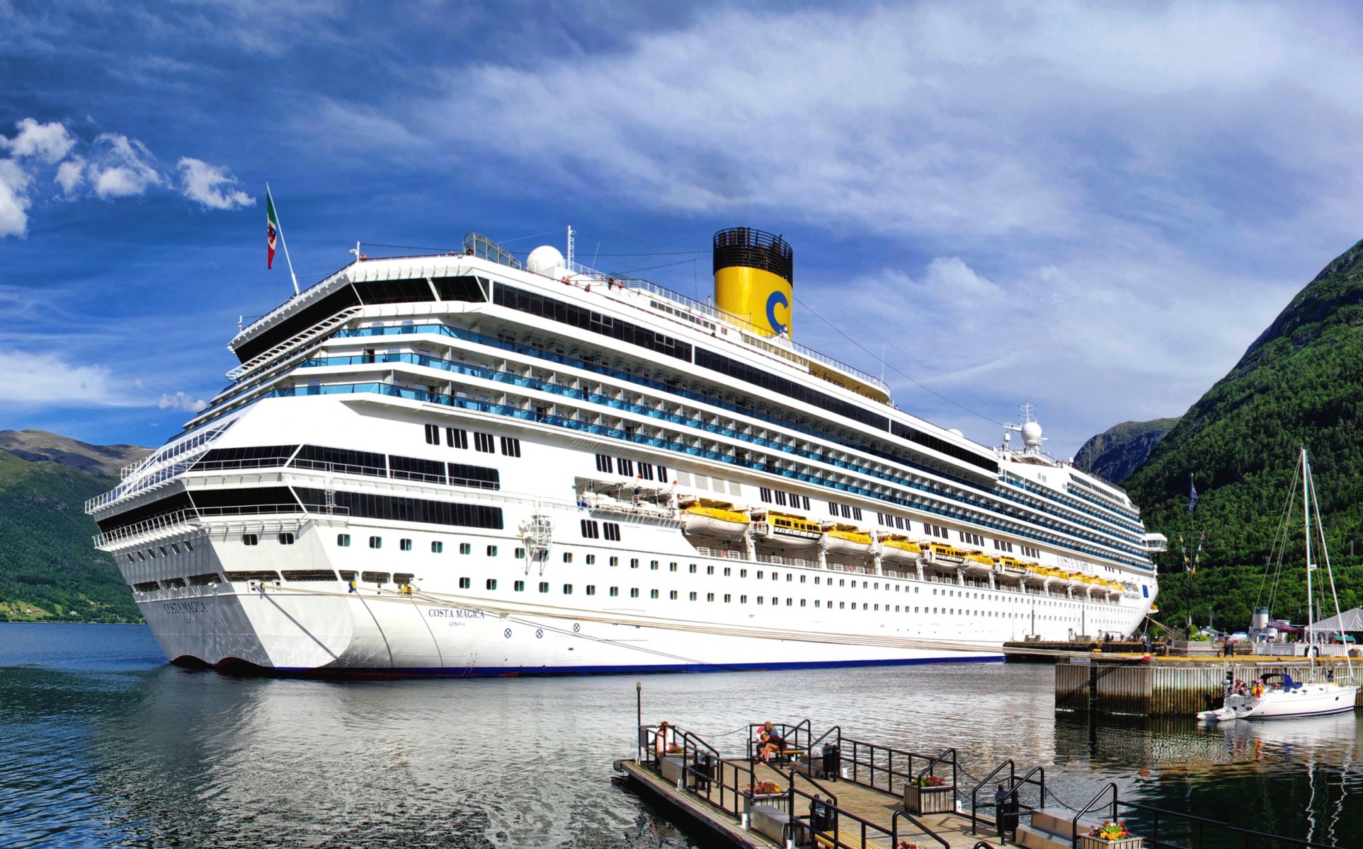 Enorme transatlántico de pasajeros en una hermosa bahíaEnorme transatlántico de pasajeros en una hermosa bahía