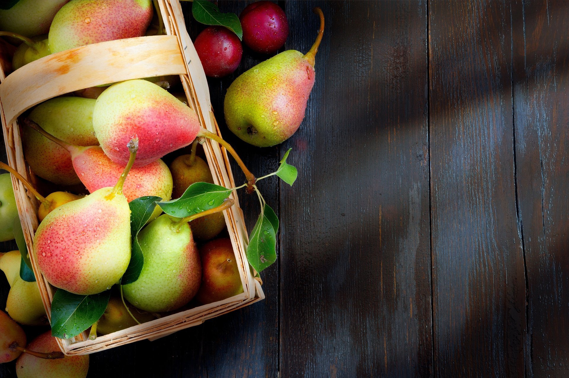 Jarra de lavanda sobre la mesa de madera con perasJarra de lavanda sobre la mesa de madera con peras