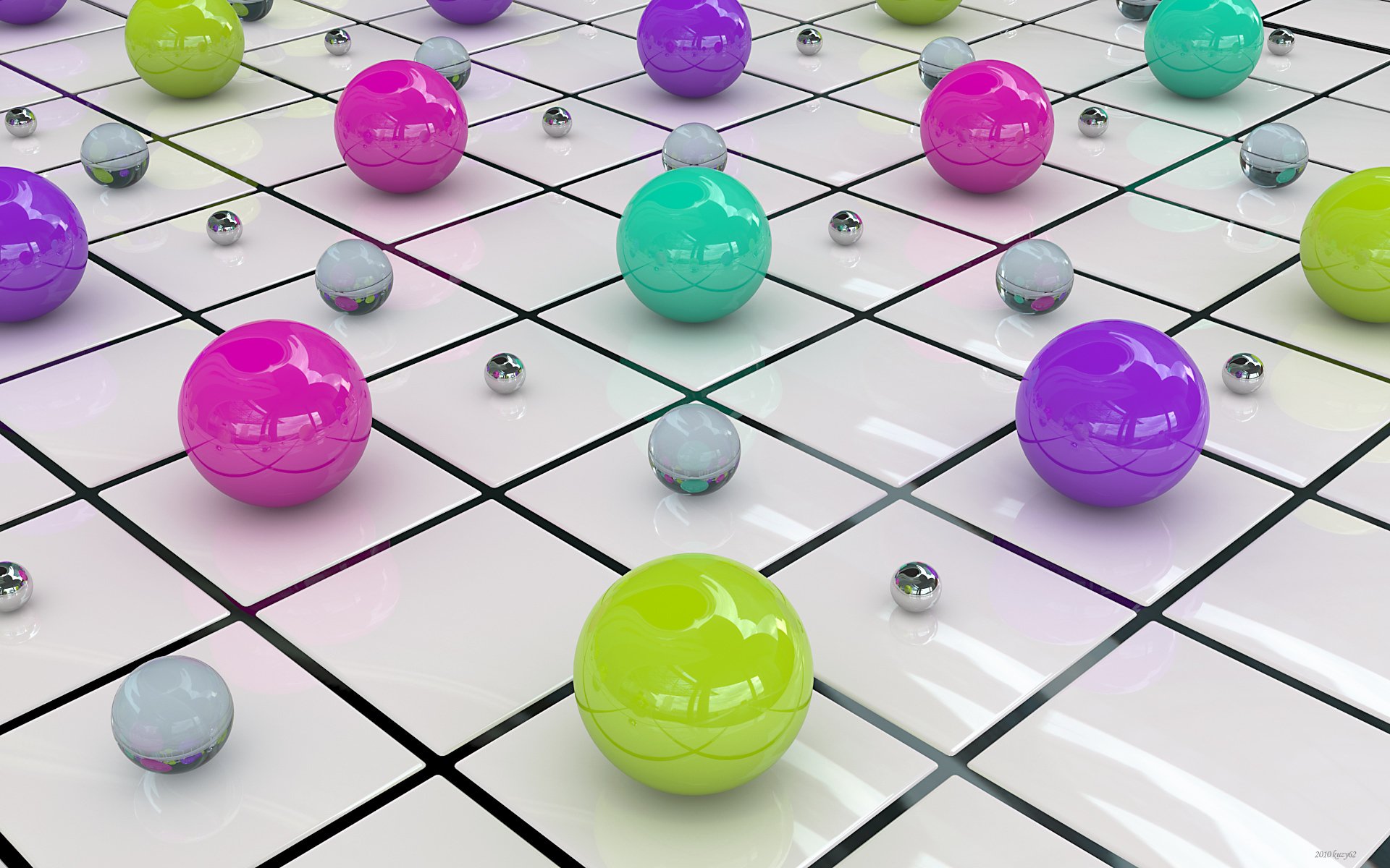 Bolas de colores en cuadrados blancos