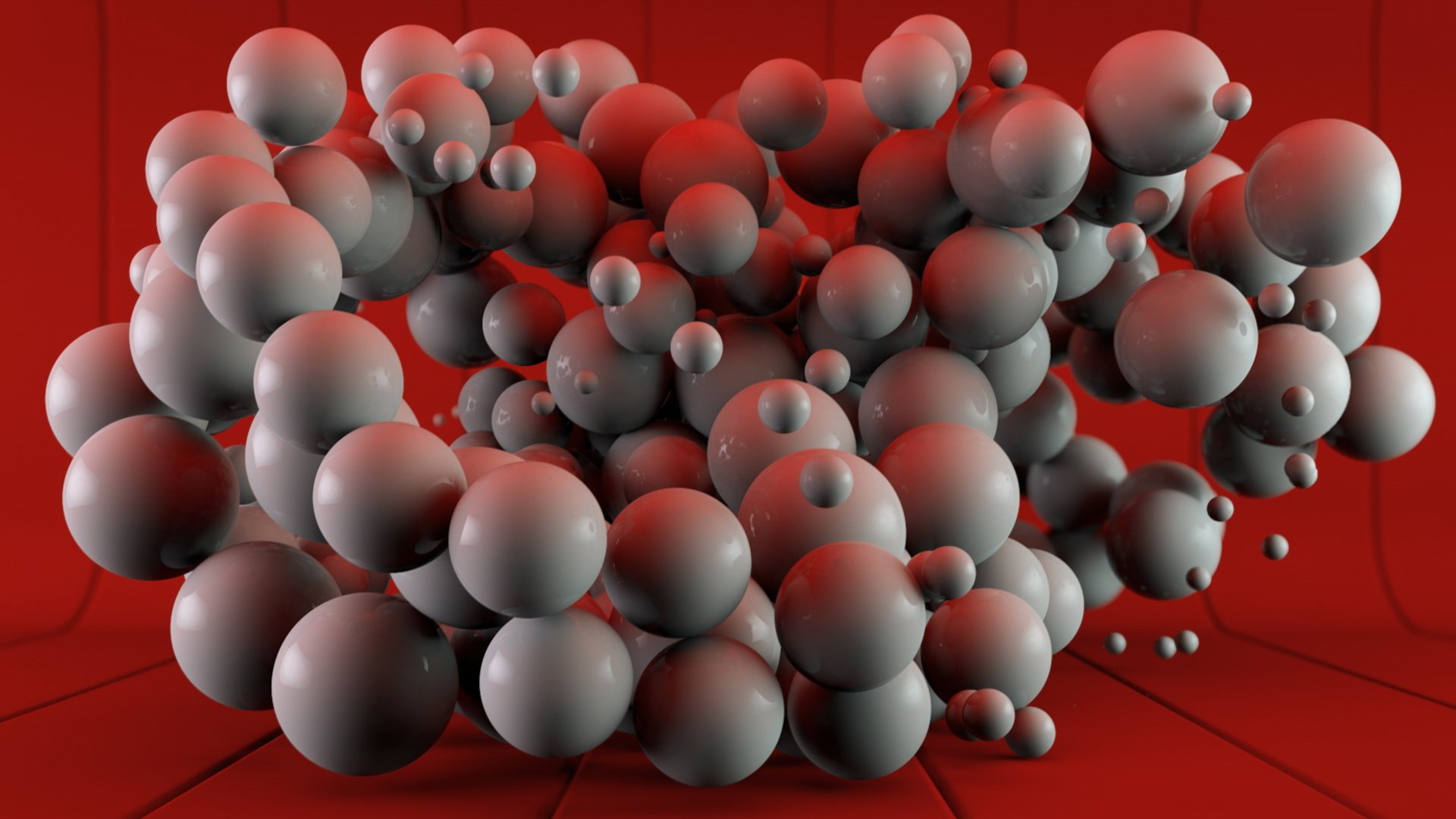 Bolas grises de diferentes tamaños sobre fondo rojoBolas grises de diferentes tamaños sobre fondo rojo