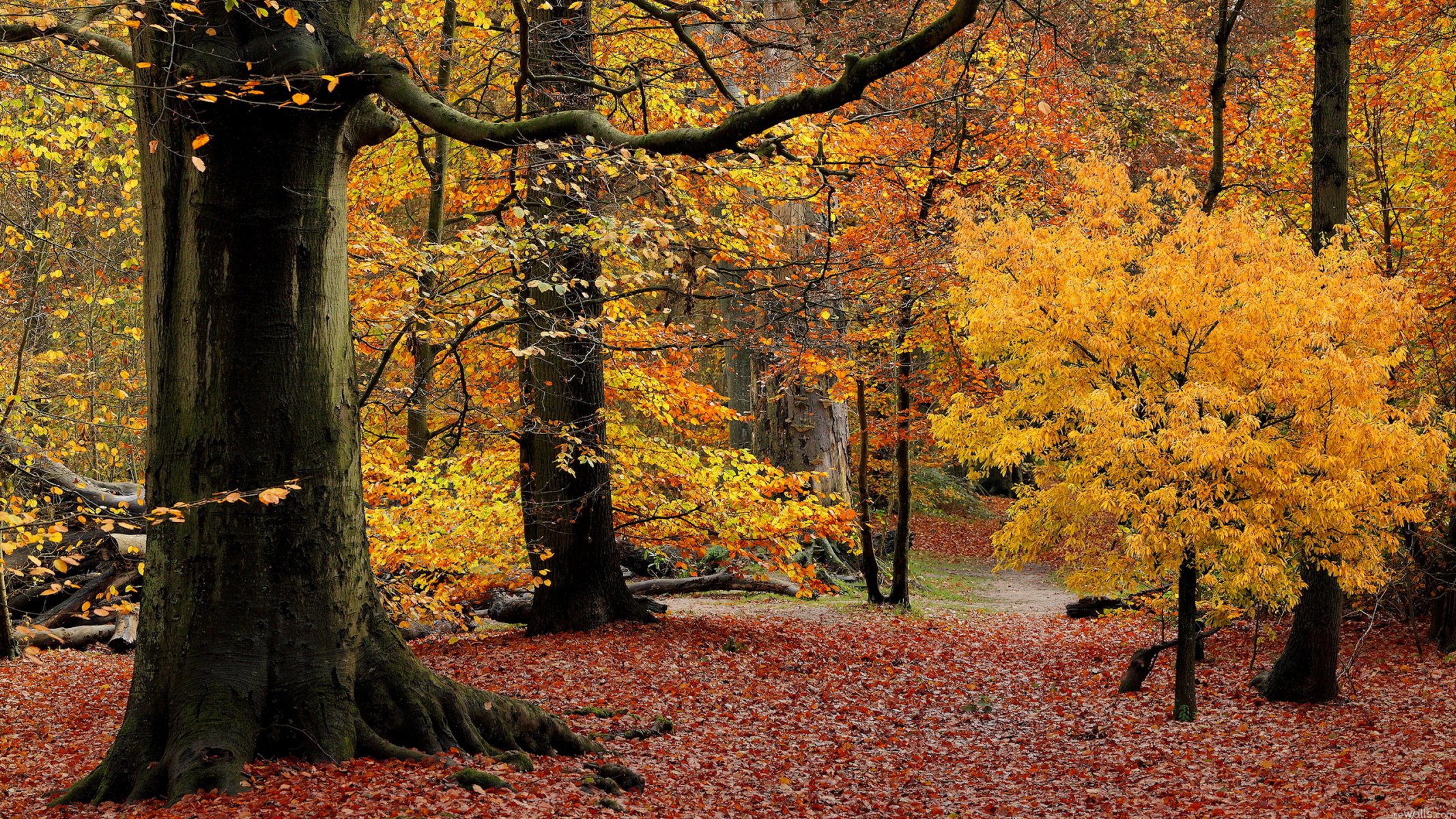 El bosque vestido de carmesí de otoño