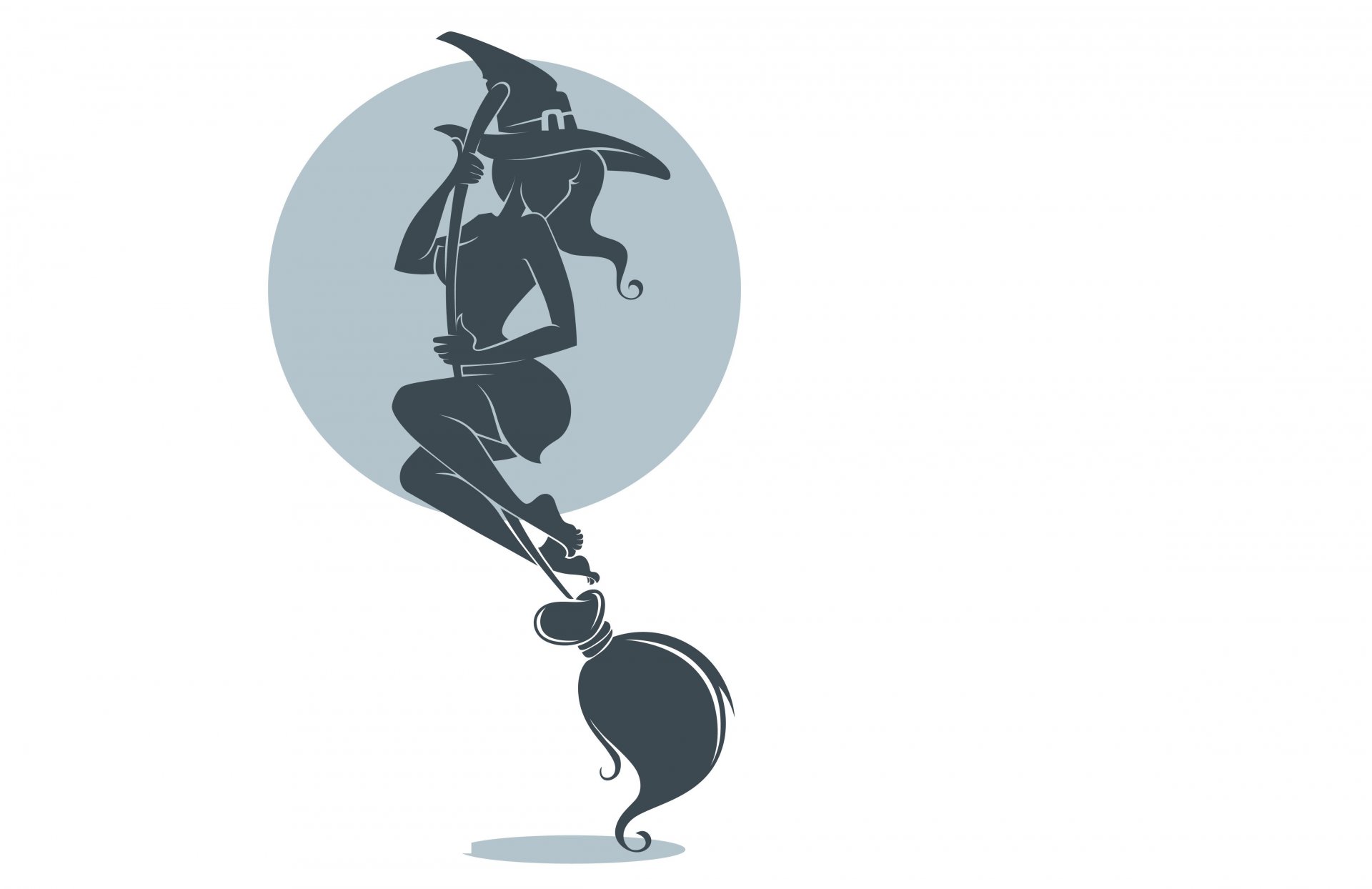 Foto exótica de una chica con un sombrero en la imagen de una bruja